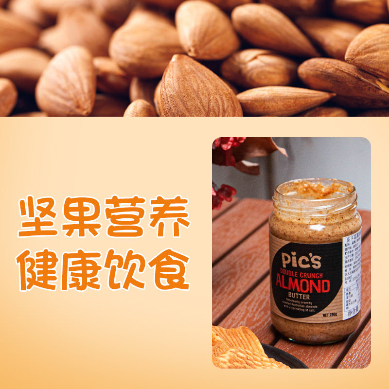 📚 pics皮卡思新西兰杏仁海盐颗粒扁桃仁巴旦木酱抹面包无添加糖290g