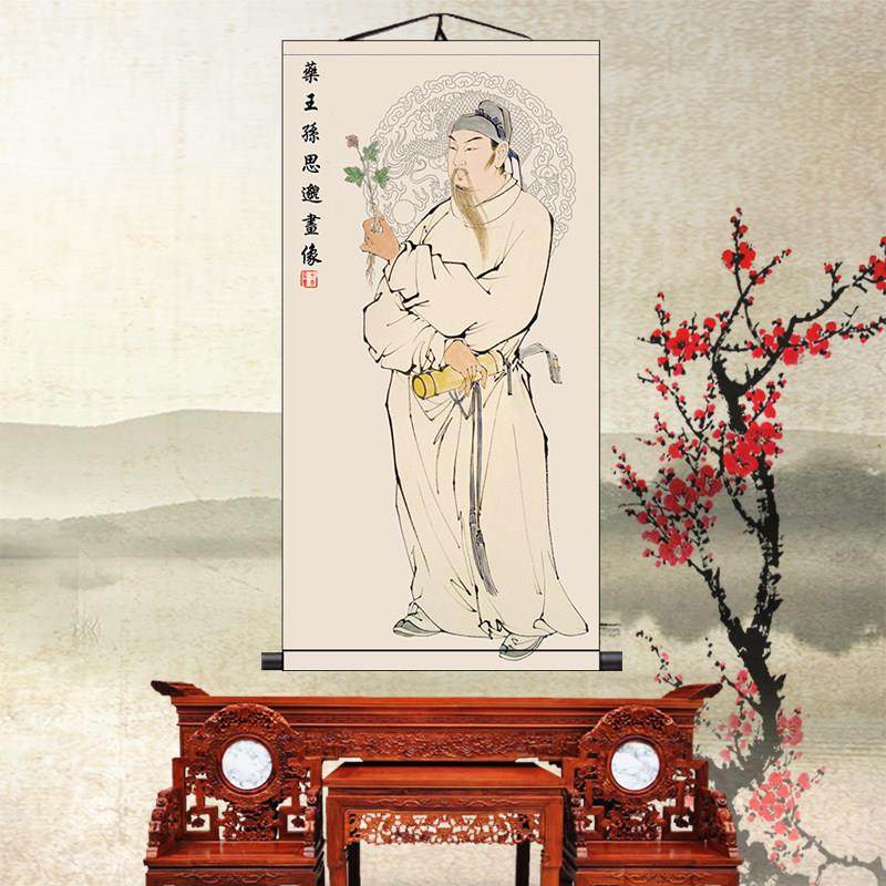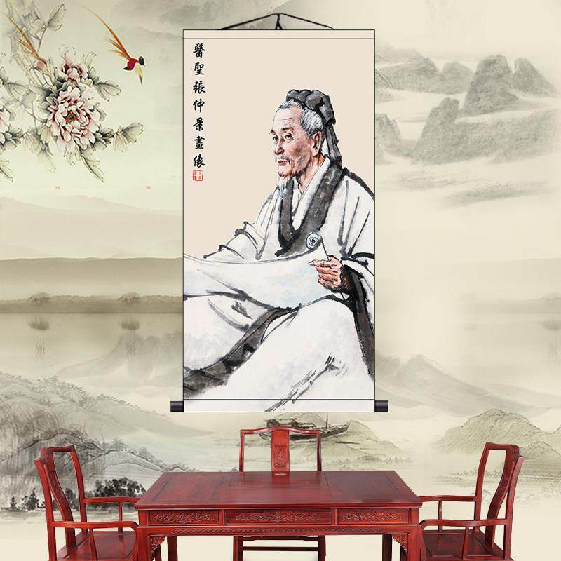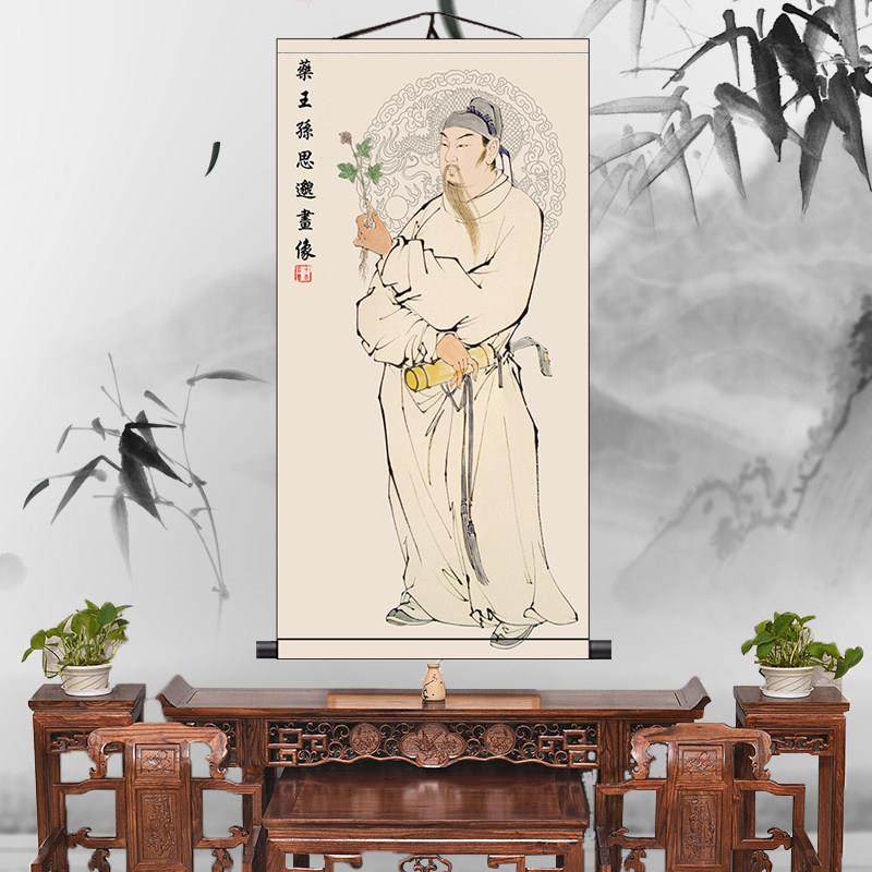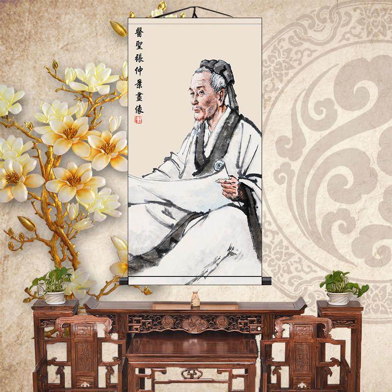 📚 医圣张仲景药王孙思邈画像挂画中医养生馆诊所药店装饰卷轴丝绸画