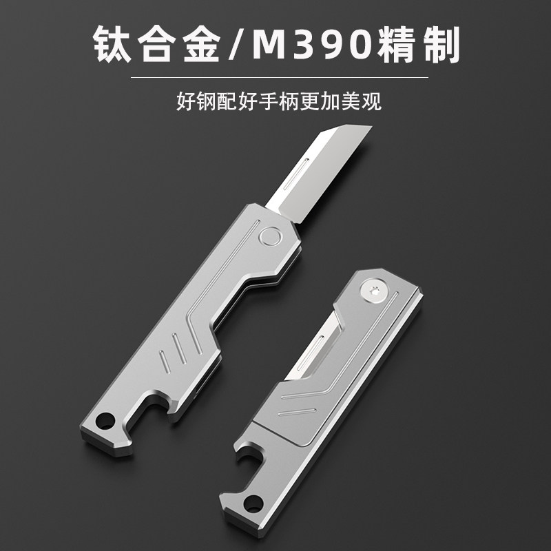 📚 钛合金迷你折叠刀M390户外便携高硬度水果小刀钥匙扣男开瓶器EDC