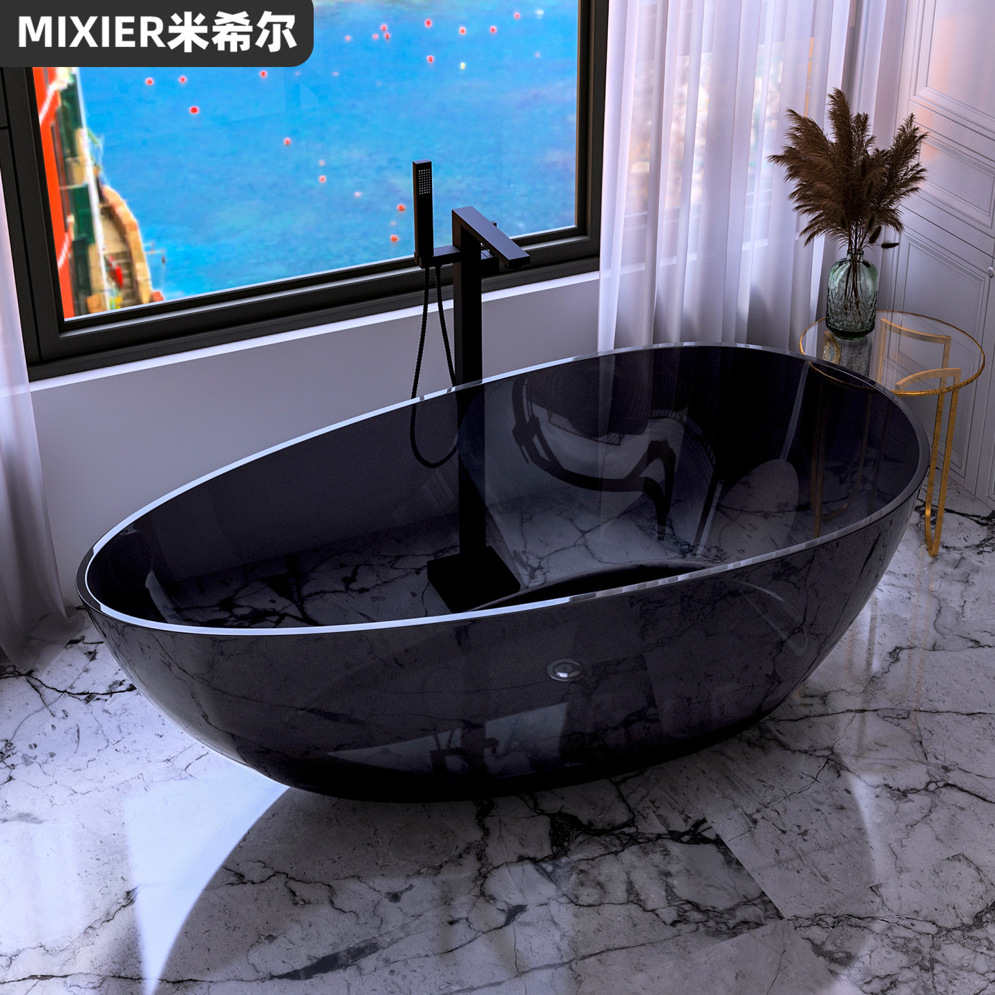 📚 人造石浴缸家用独立式水晶透明缸双人网红民宿酒店民宿浴盆小户型