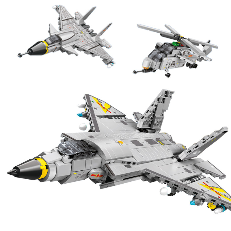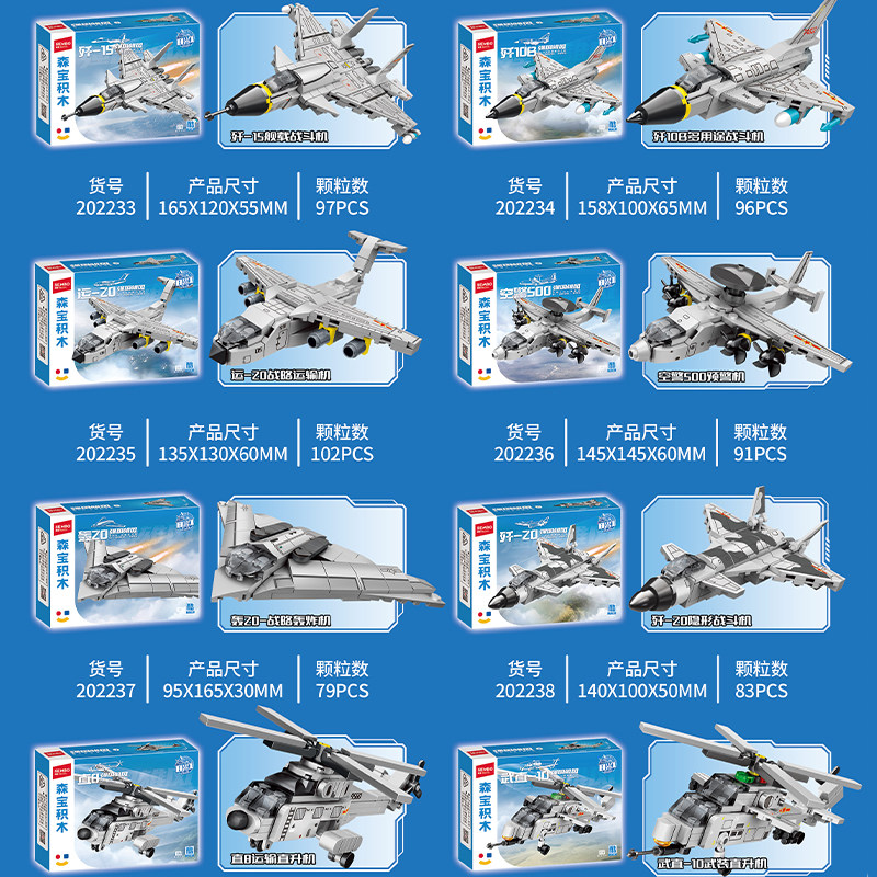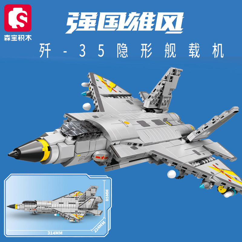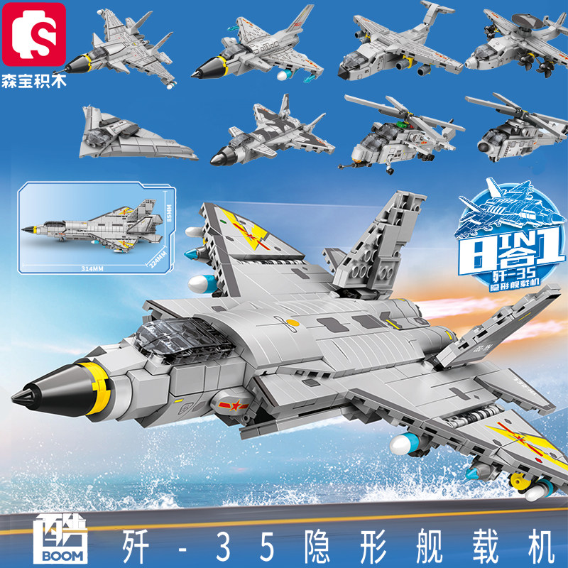 📚 森宝积木歼35隐形舰载战斗机拼插装运输机军事预警机模型益智玩具