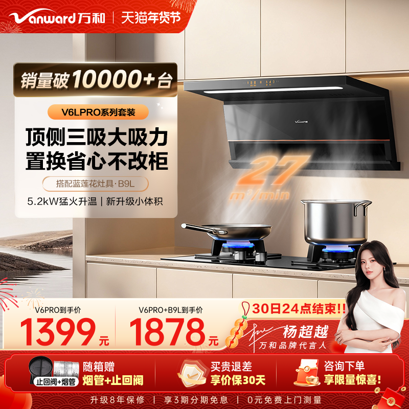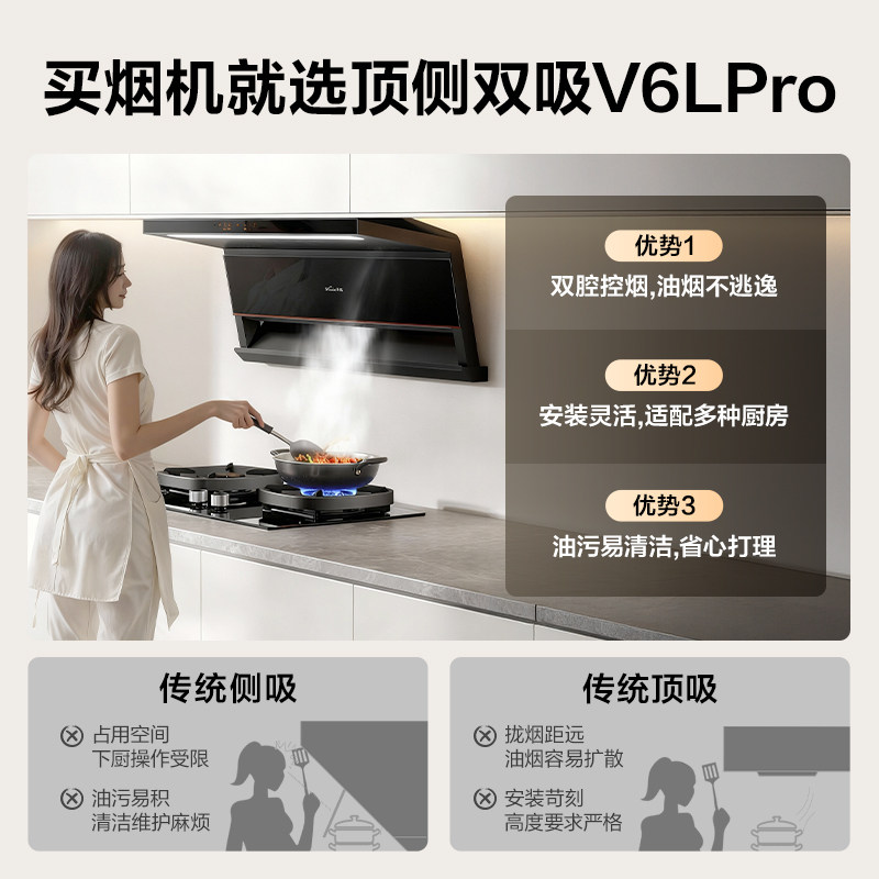 📚 [百亿补贴]万和顶侧双吸家用厨房大吸力抽油烟机燃气灶套装V6LPRO