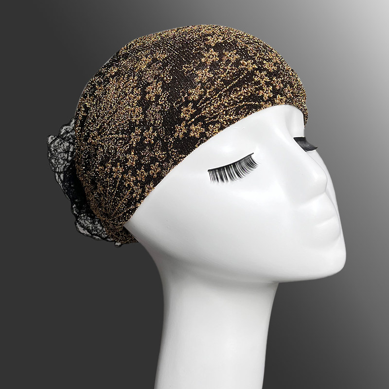 📚 秋冬款洋气遮白发包头帽薄款蕾丝花朵弹力帽头巾帽2025新款帽子女