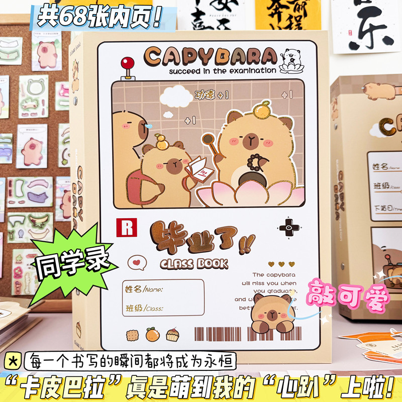 📚 shibook可爱“卡皮巴拉”六年级初三女生毕业同学录A4/16K大号烫金毕业纪念留言册毕业礼物韩版活页可拆彩页