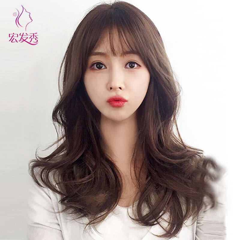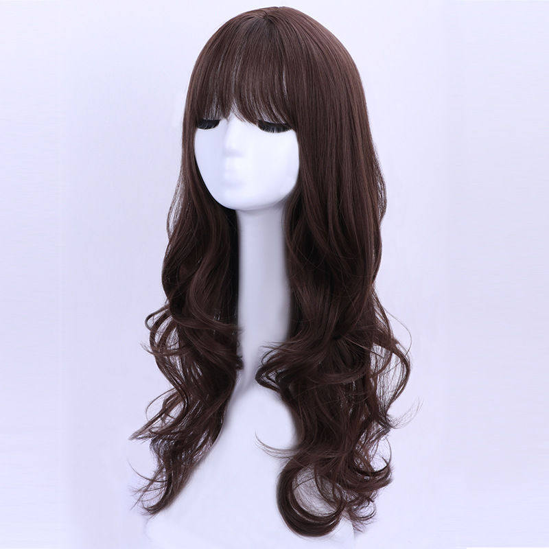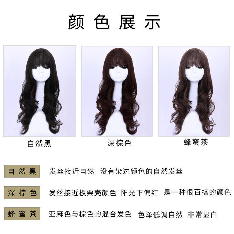 📚 假发女长卷发漫画齐刘海网红大波浪长卷发逼真空气刘海假发全头套