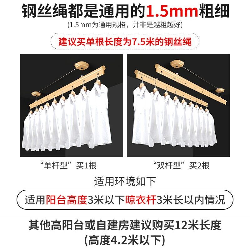 📚 304不锈钢升降晾衣架钢丝绳手摇器电动阳台晒衣杆配件316材质钢线