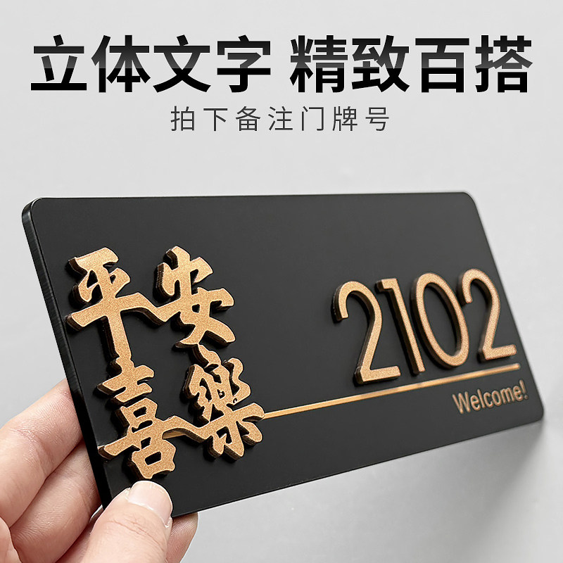 📚 平安喜乐磁吸门牌号高级感轻奢创意家用定制高颜值住宅小区别墅家庭入户门口喜庆搬家乔迁装饰数字房号牌门贴