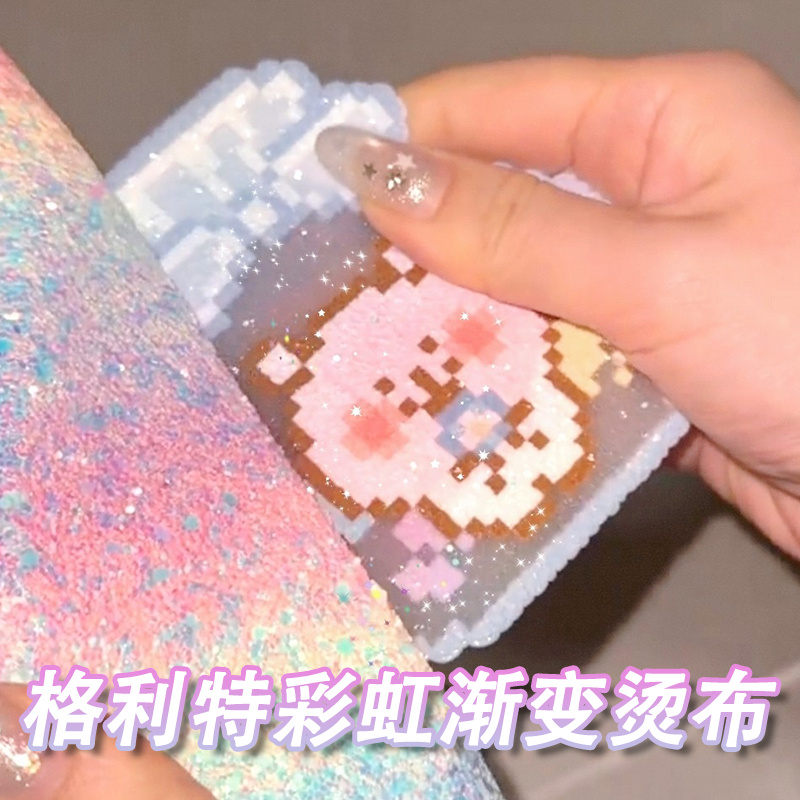 📚 拼豆烫布彩虹渐变格利特diy闪光革格丽特闪布0.6MM手工面料烫豆