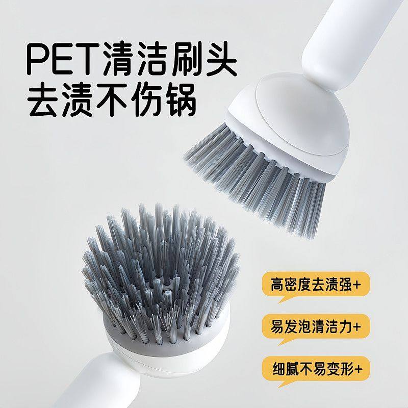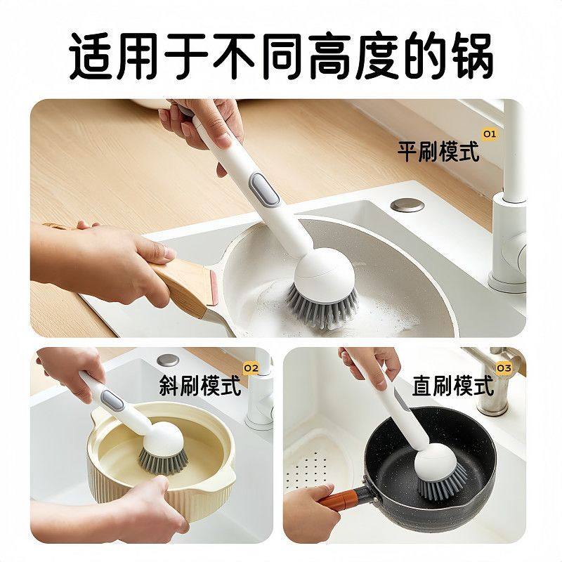 📚 多功能长柄加液洗锅刷子家用可旋转锅刷按压出液洗碗批发不伤锅