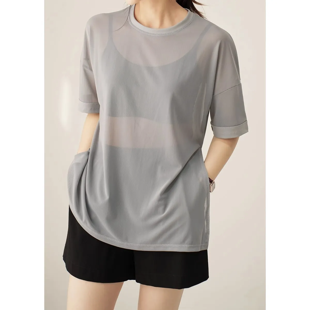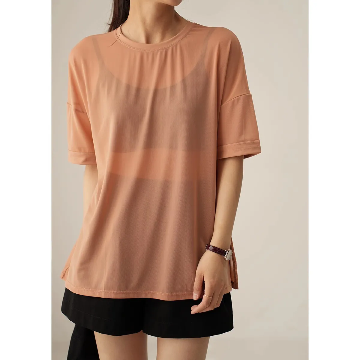 📚 瑜伽服上衣女夏季薄款透气速干健身跑步宽松短袖网纱运动T恤罩衫