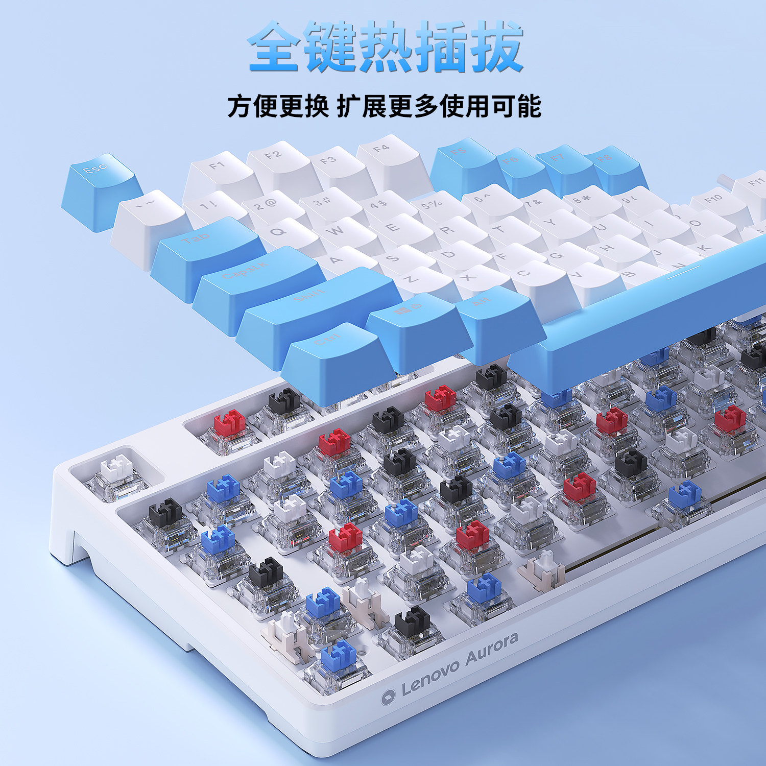 📚 联想GK10机械键盘87键有线电竞游戏青茶红热插拔轴台式笔记本办公