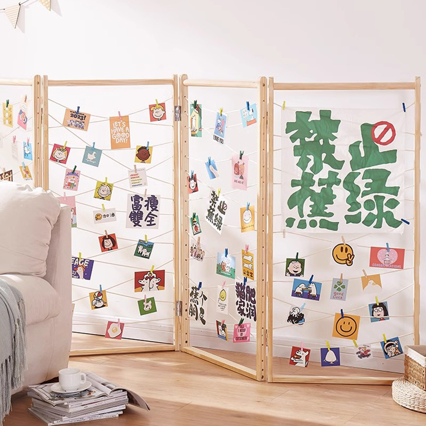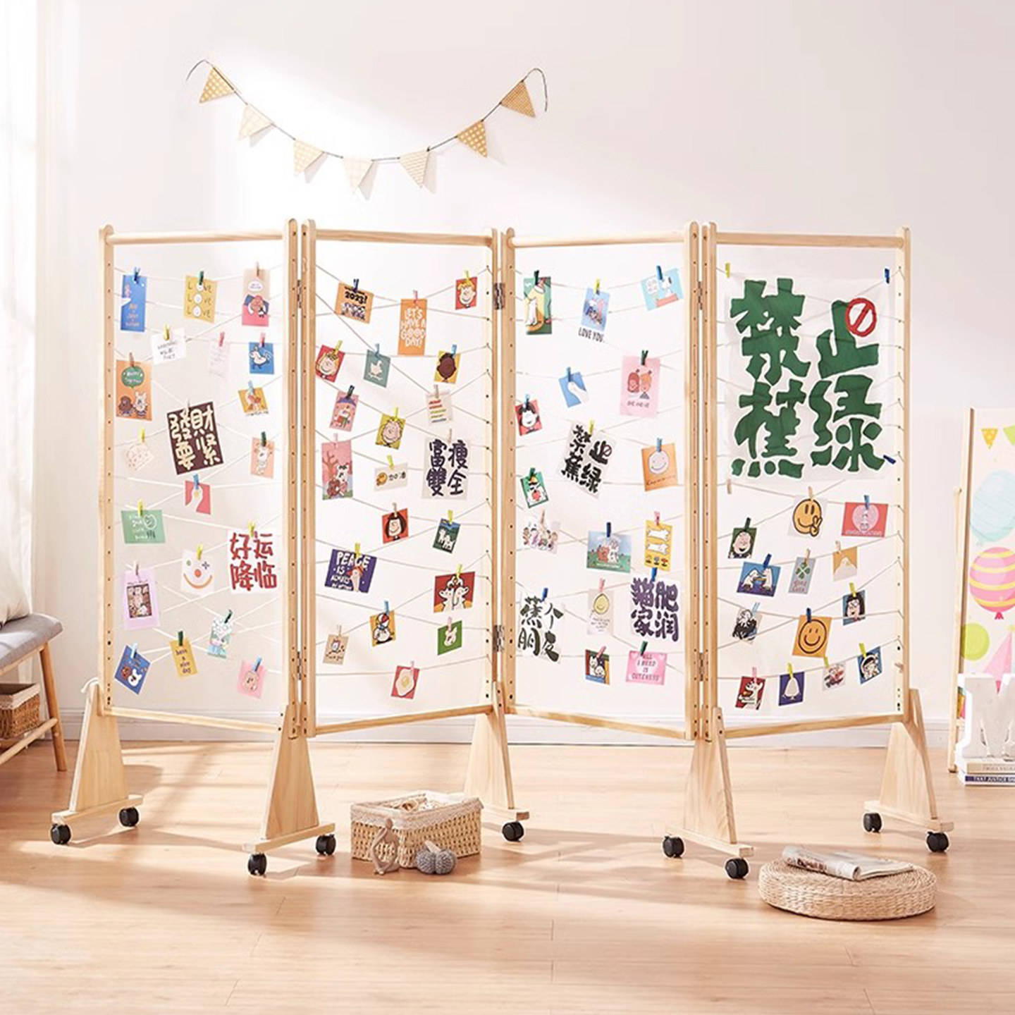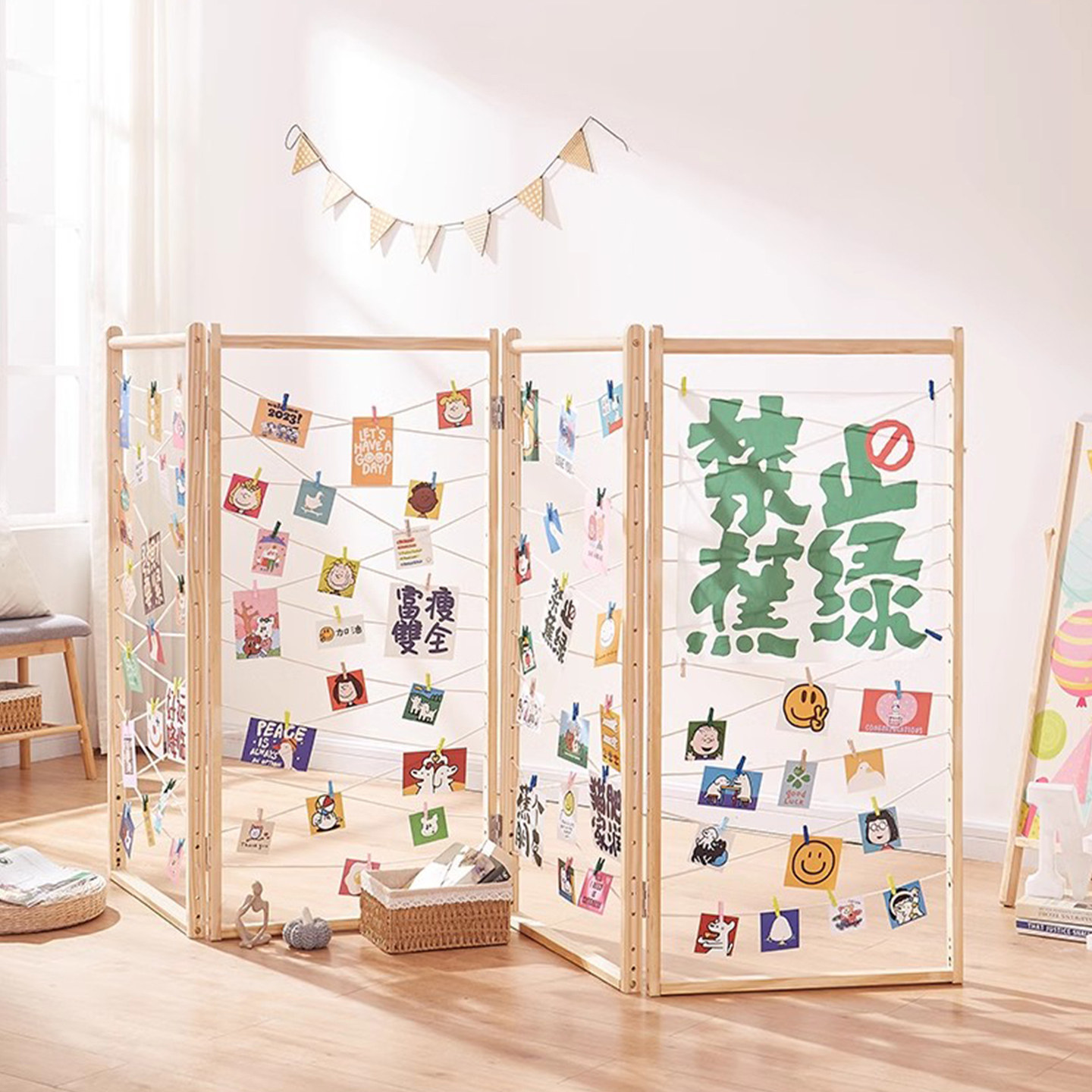 📚 照片网格展示架可折叠实木移动幼儿园美术绘画作品照片装饰麻绳款