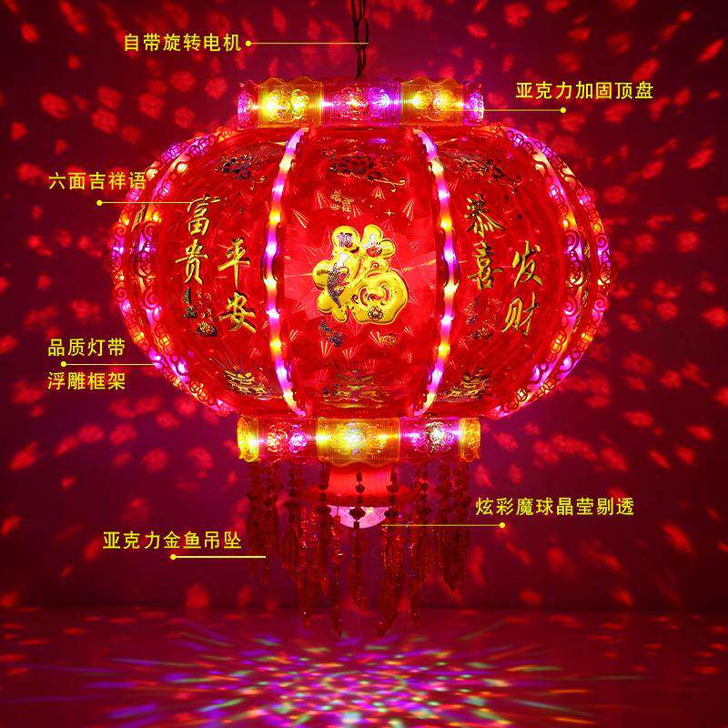 📚 春节七彩旋转LED灯笼春节走马灯结婚装饰乔迁大门新年电灯笼