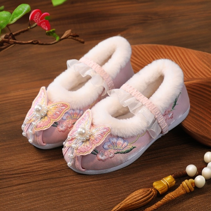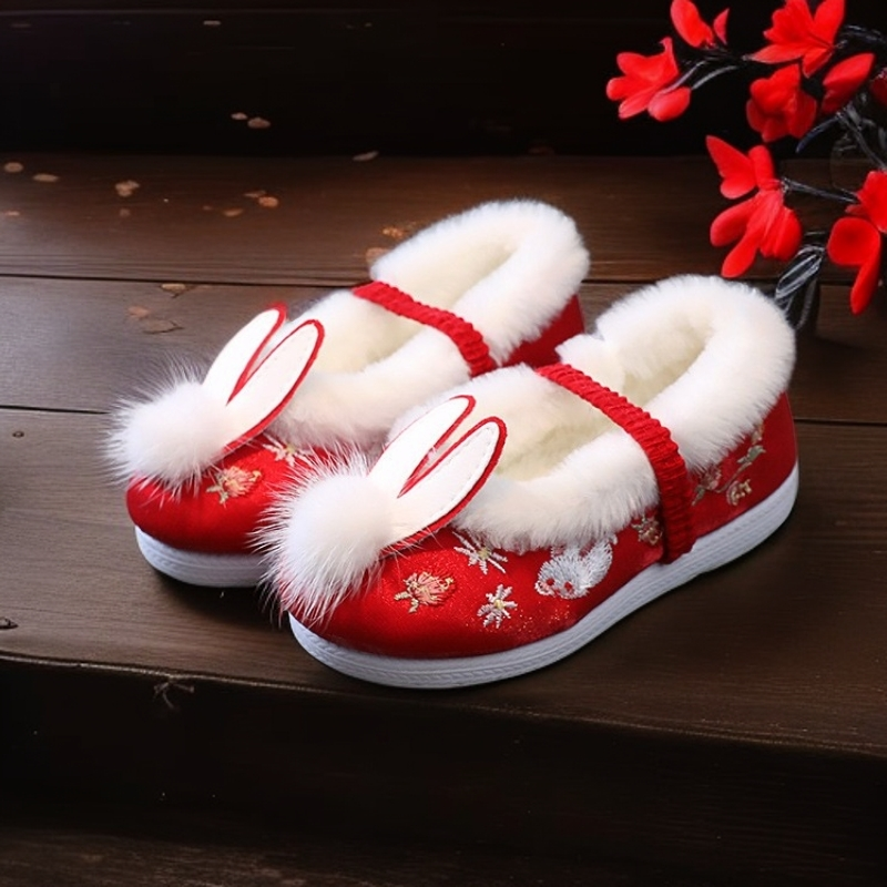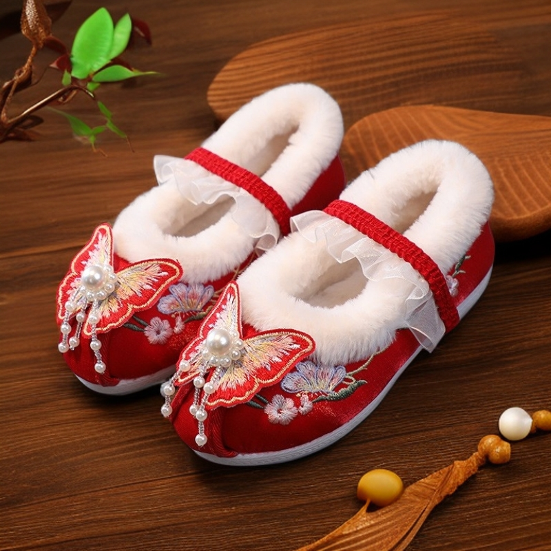 📚 民族风儿童绣花鞋女童公主鞋古装演出汉服鞋红色唐装旗袍鞋子冬季