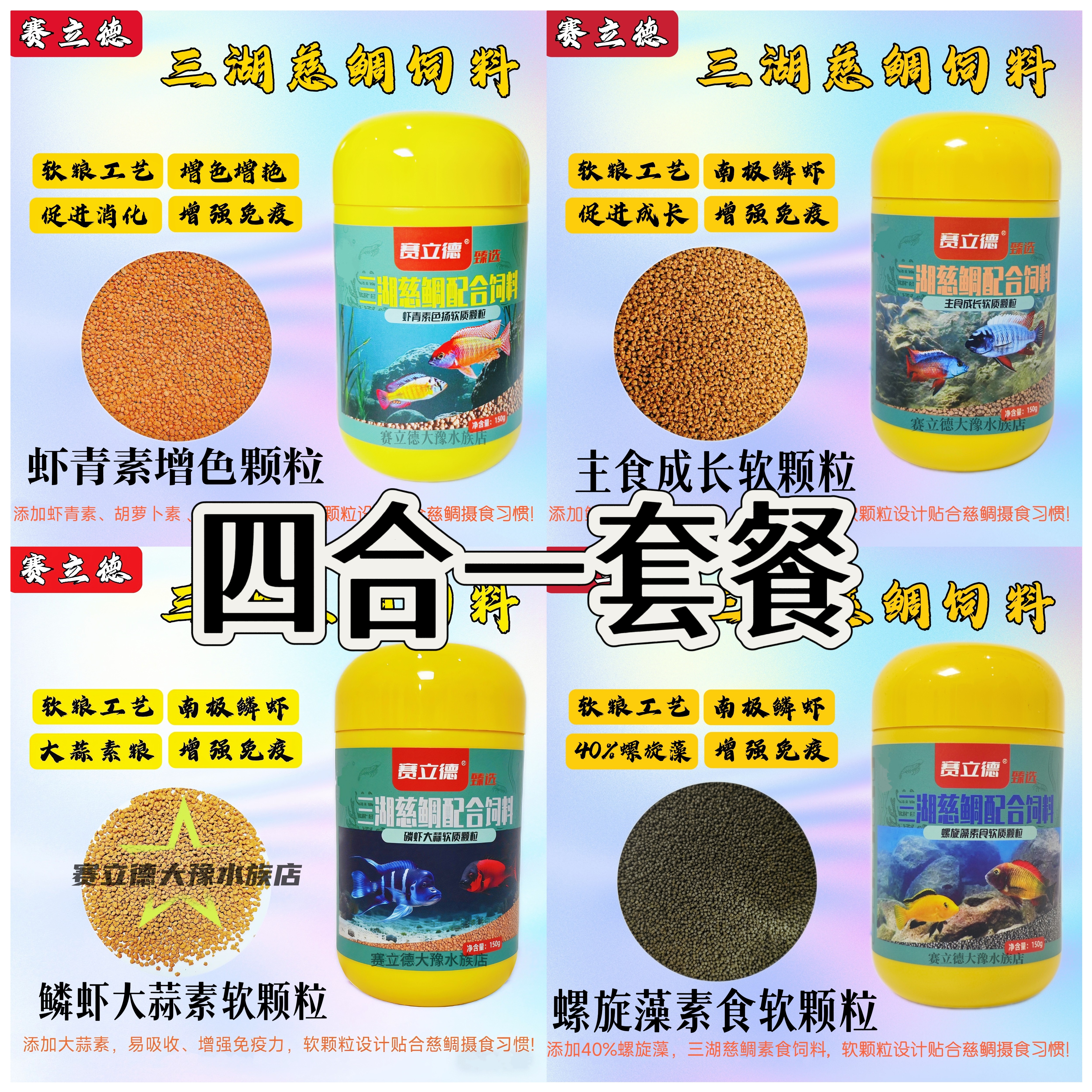 📚 赛立德三湖慈鲷鱼饲料大蒜素粮成长活力增色螺旋藻颗粒四合一套餐