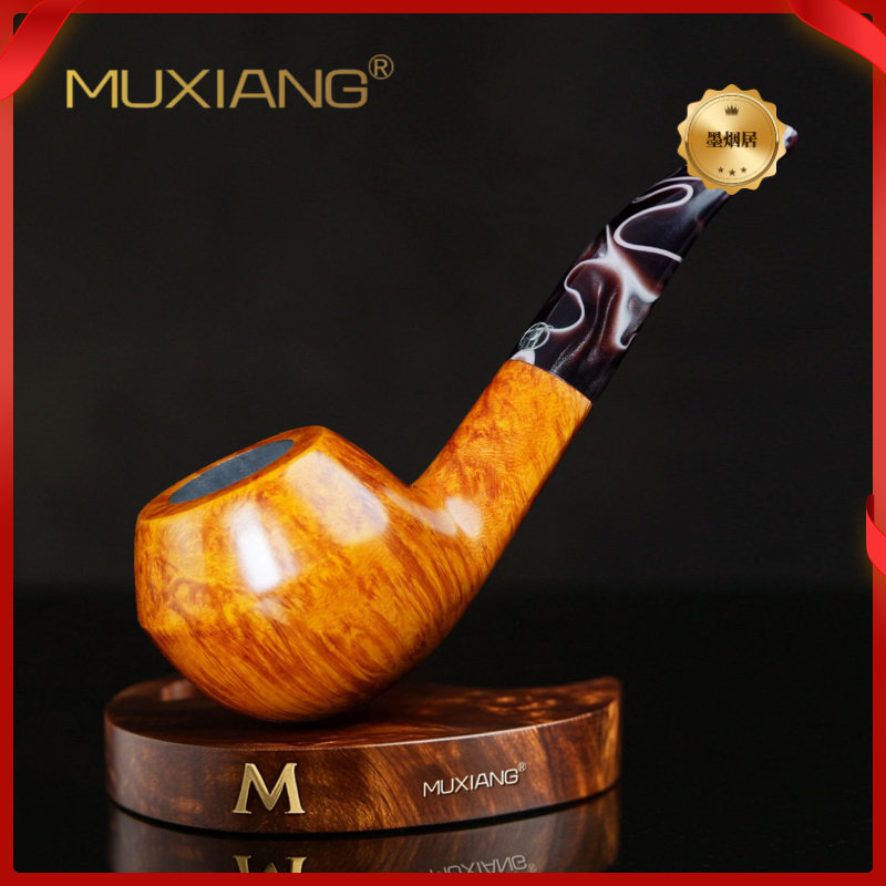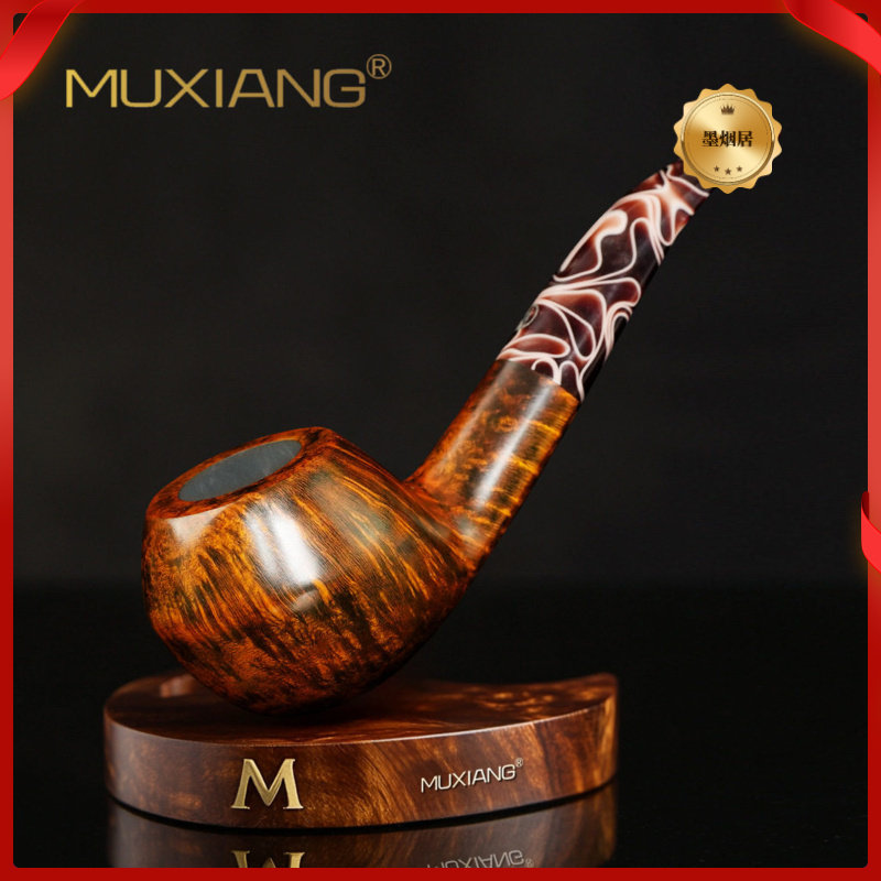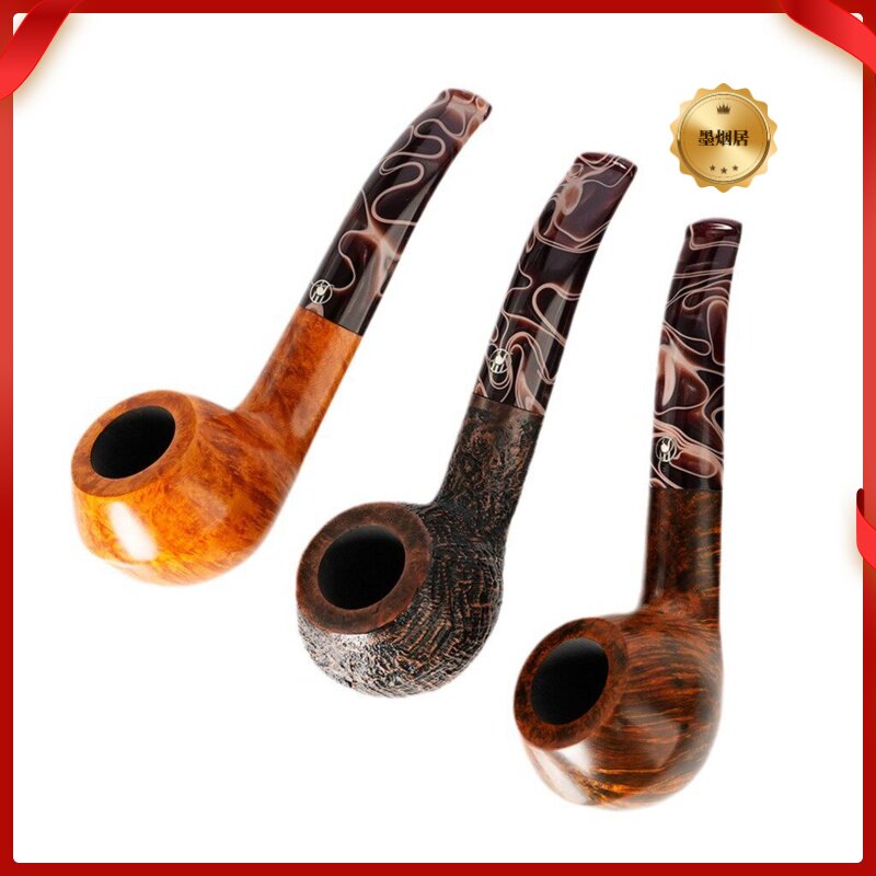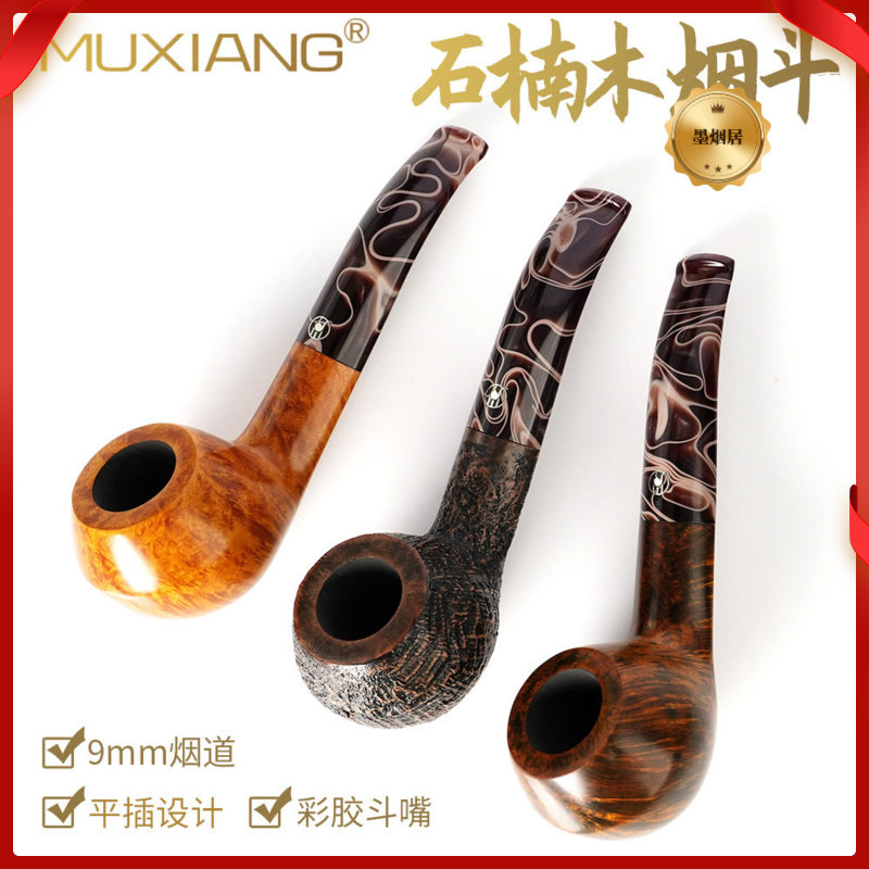 📚 木香烟斗石楠木沙芬同款实木弯式复古男士9mm过滤芯烟具厂家批发