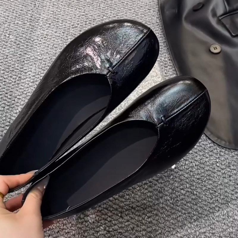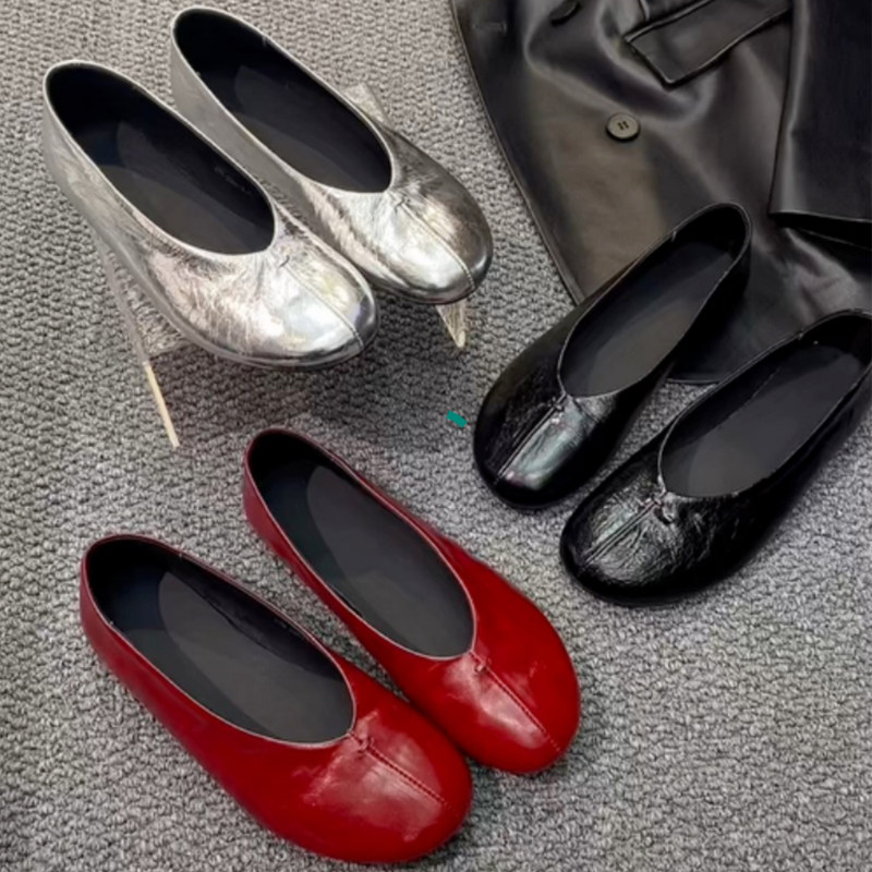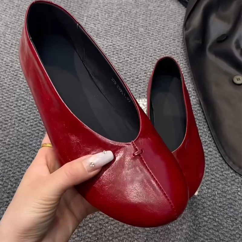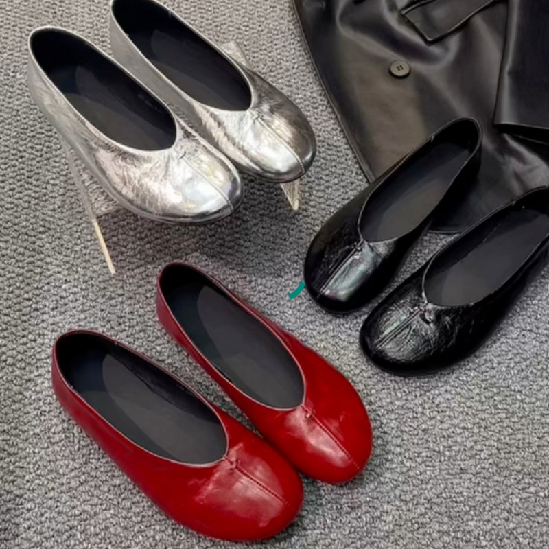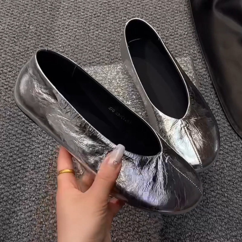 📚 烟雨诗情2026春季新款舒适牛皮真皮一脚蹬平底鞋浅口单鞋女鞋7741