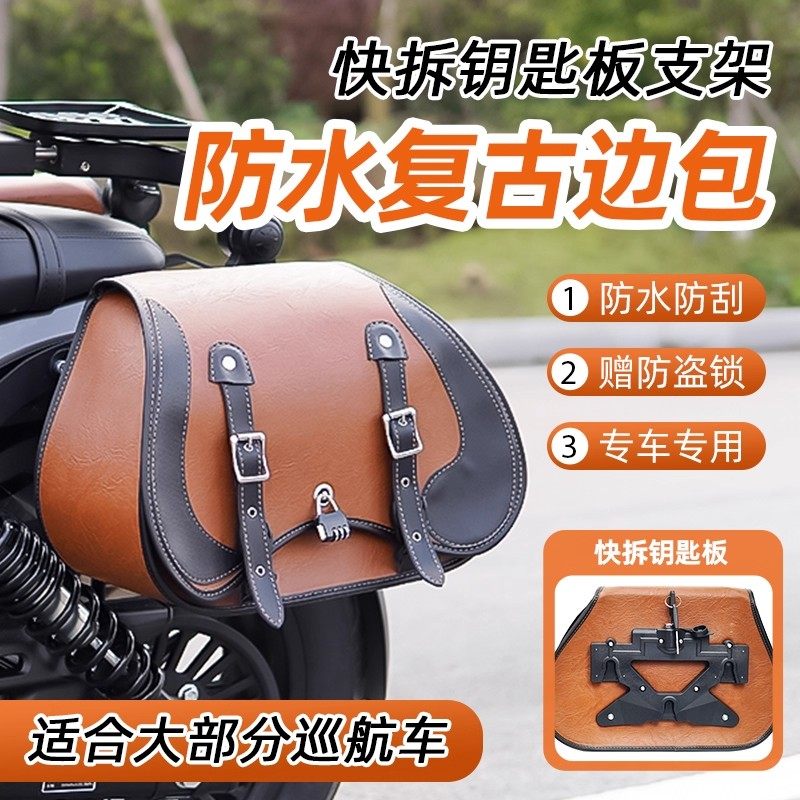 📚 无极CU525金吉拉灰石闪300边包摩托车复古侧挎包防水皮边包配件