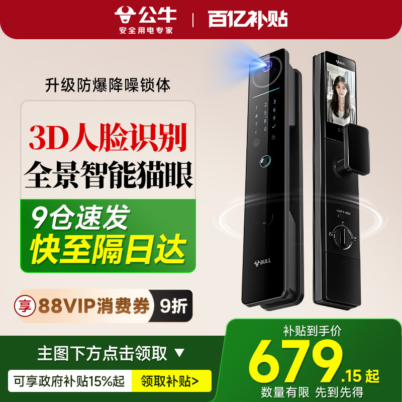 📚 公牛智能门锁全自动指纹锁家用防盗门人脸识别智能锁密码锁电子锁