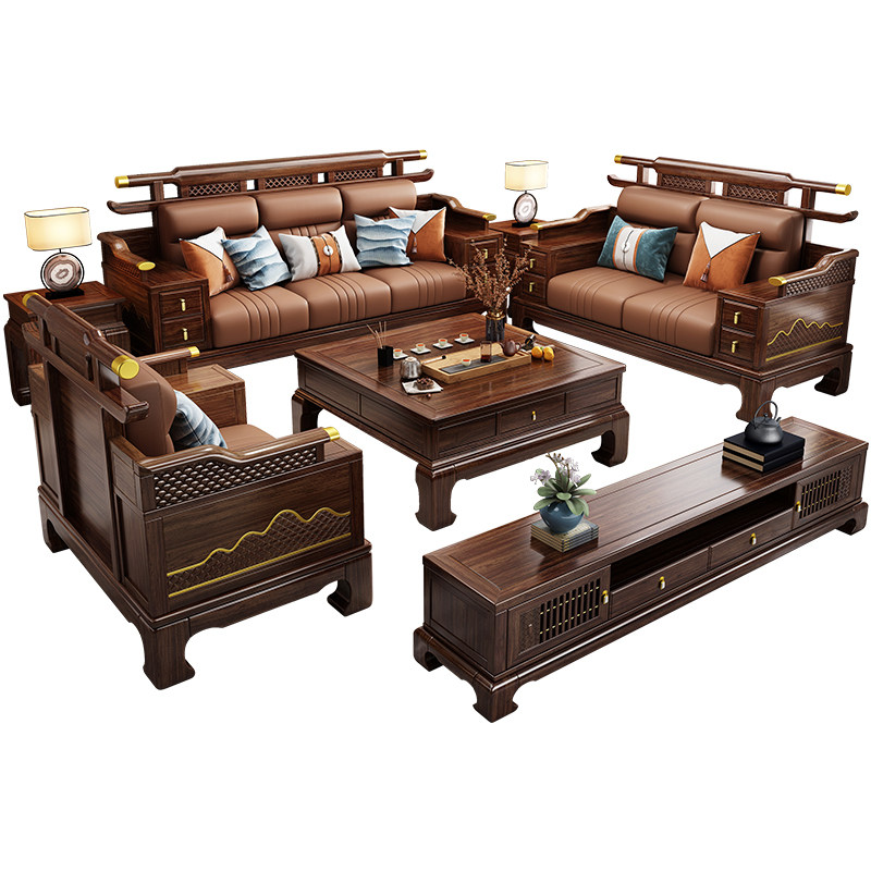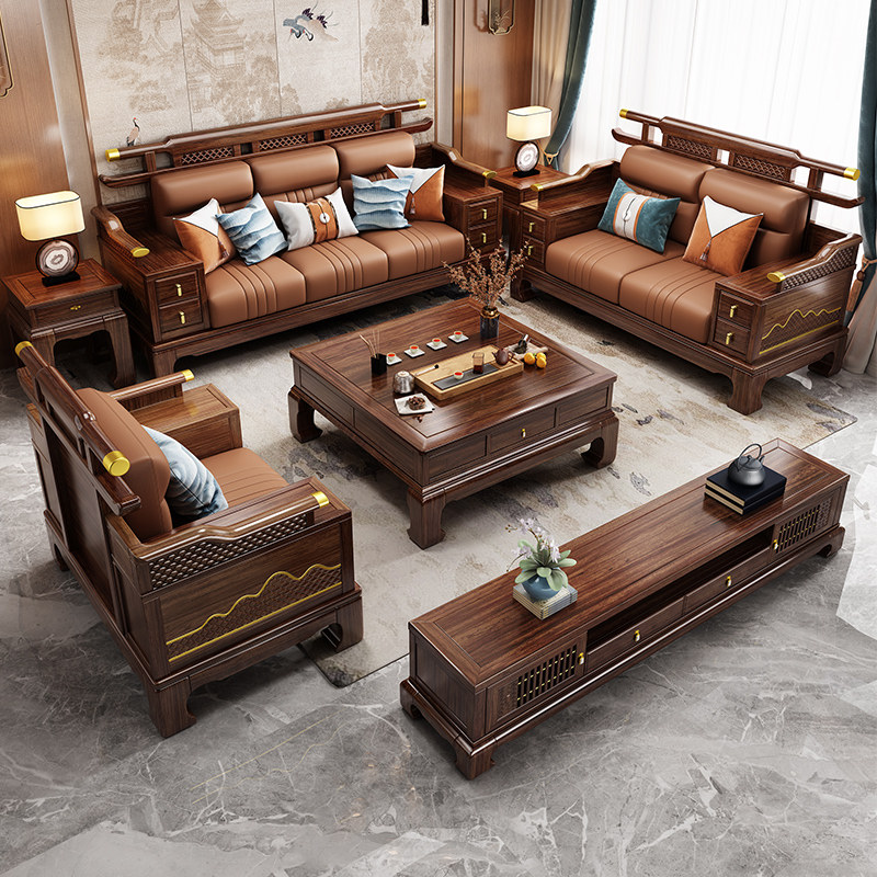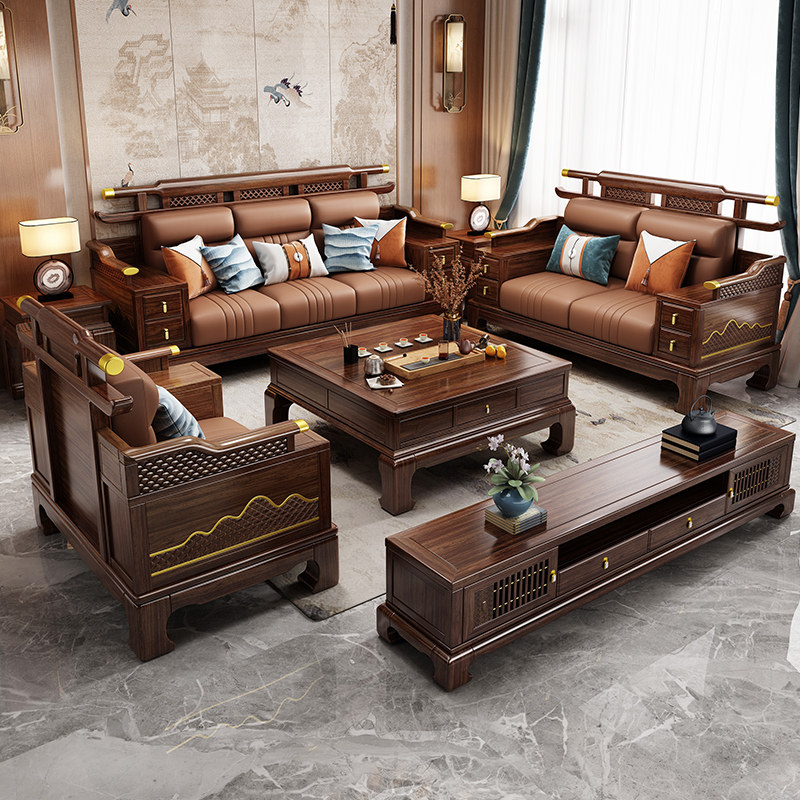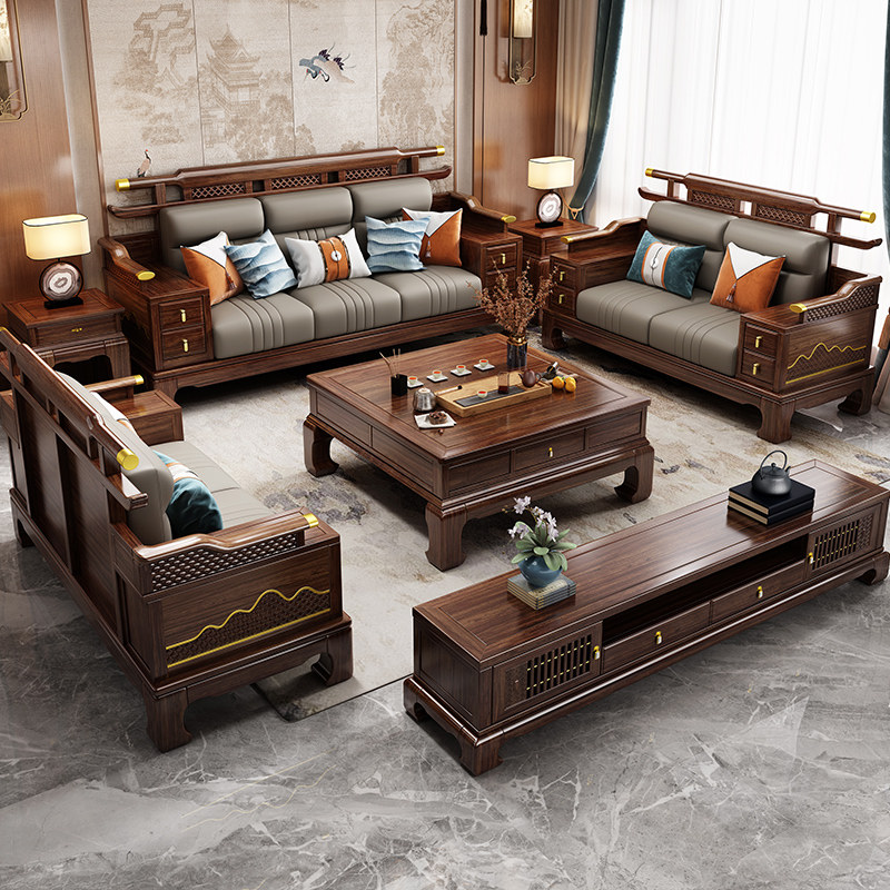 📚 新中式乌金木实木沙发别墅轻奢客厅大小户型冬夏两用高端家具组合