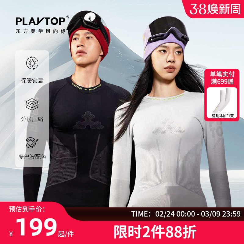 📚 PlayTop火山泥圆领滑雪速干衣男女排汗保暖压缩跑步冰球功能内衣