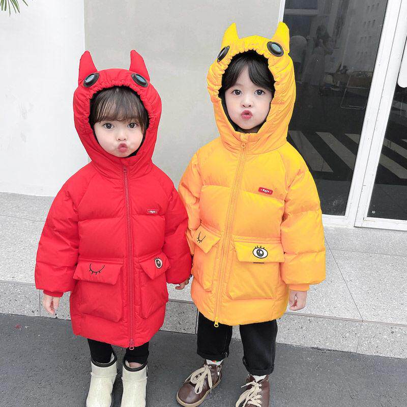📚 超萌加厚儿童羽绒服中长款过膝女童小宝宝2婴儿白鸭绒洋气一1岁半