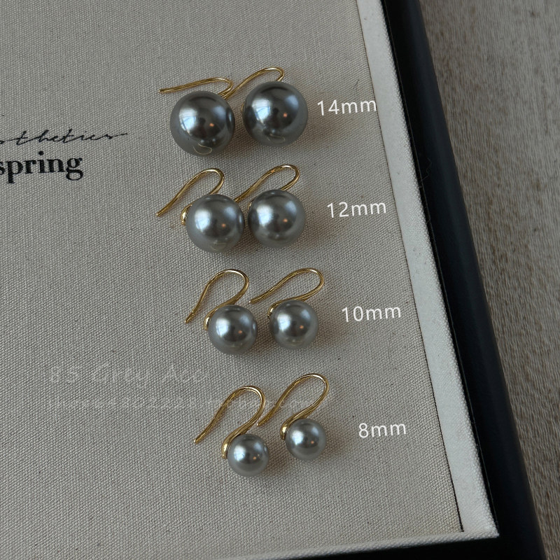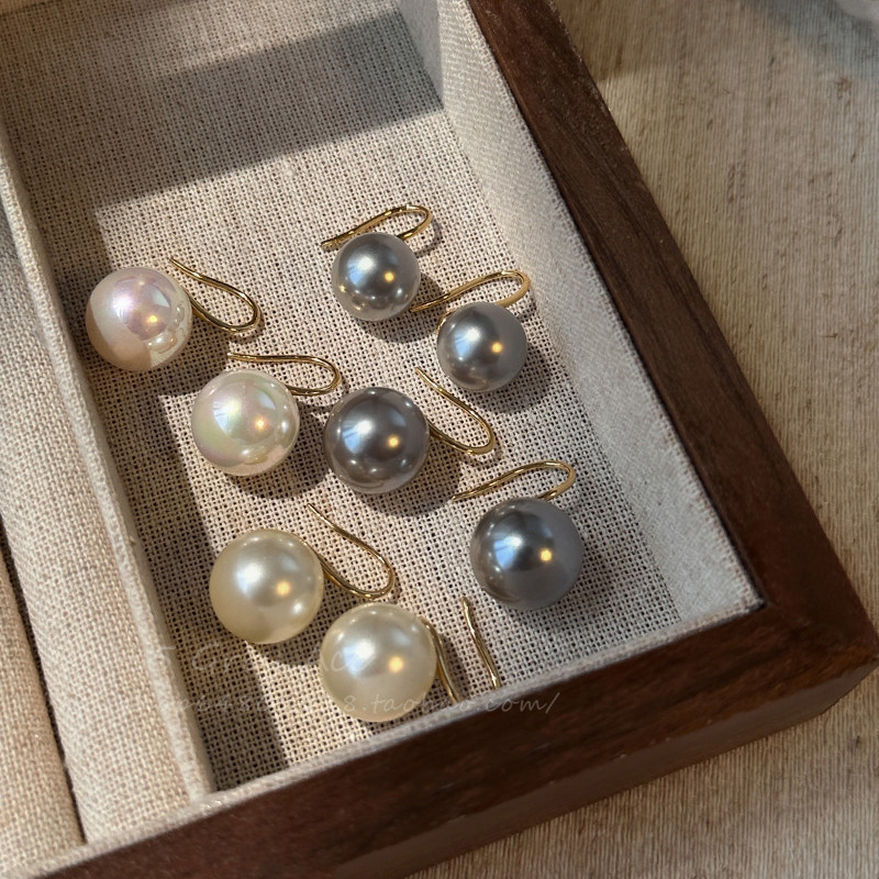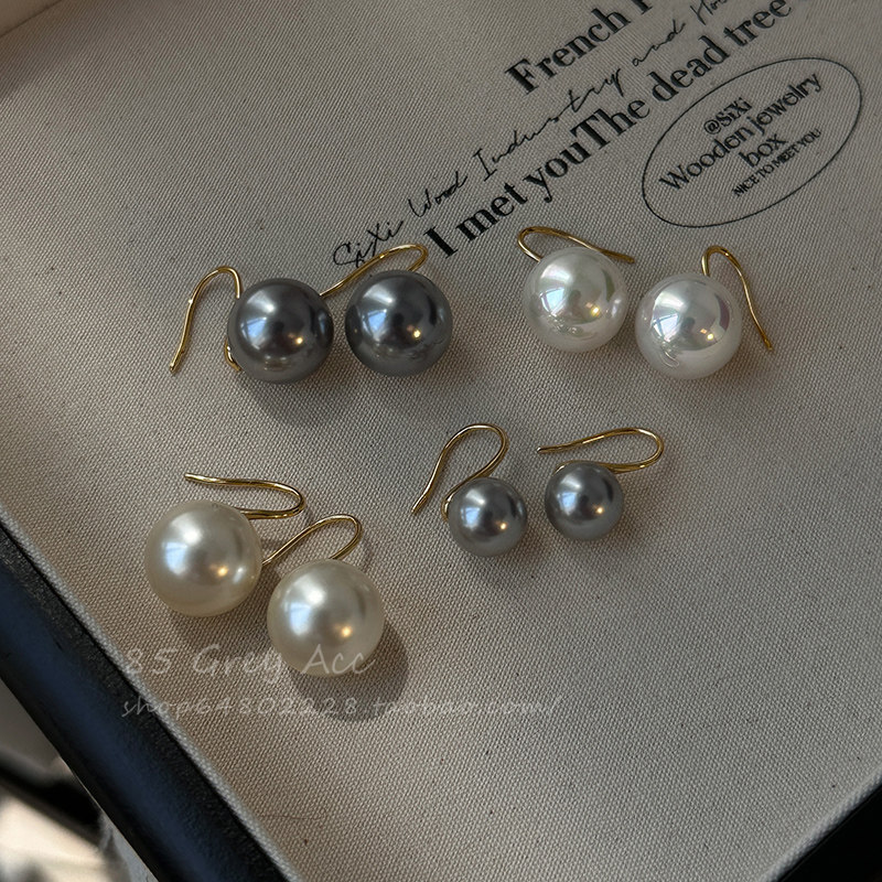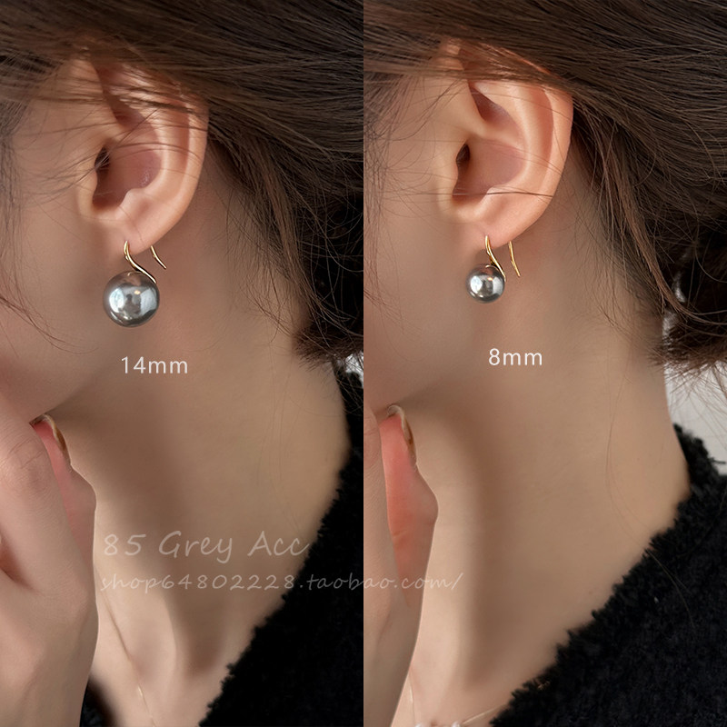 📚 施家珍珠耳钉女轻奢气质耳环小众设计高级感耳钩真多麻灰色耳饰品