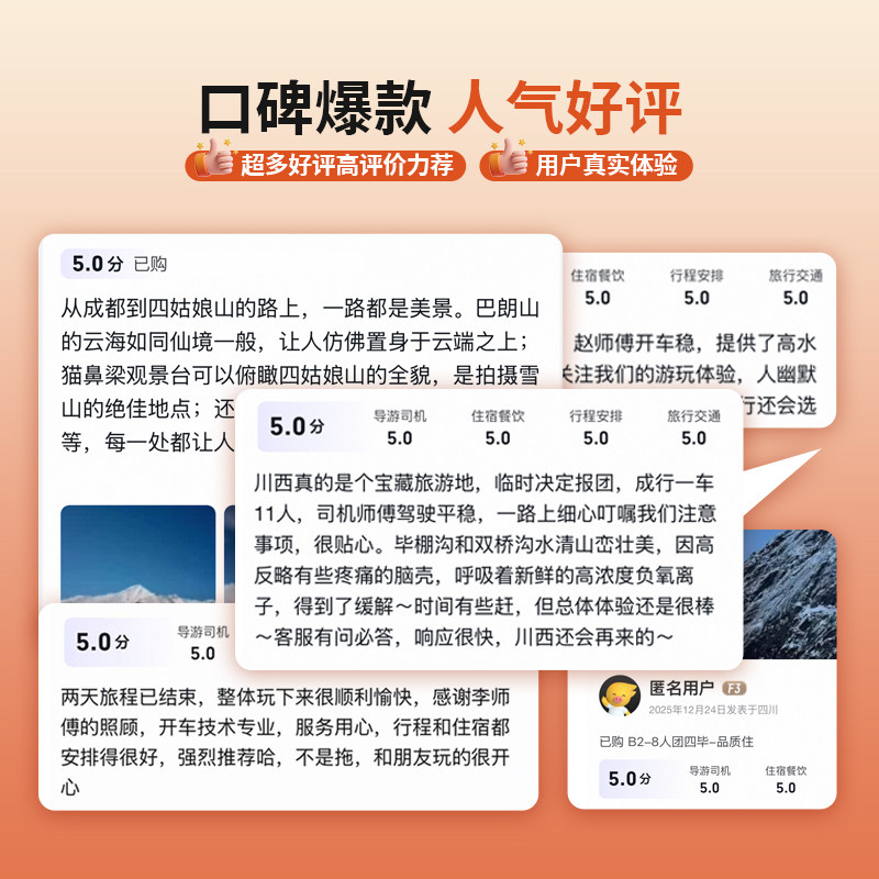 📚 川西四姑娘山毕棚沟2日游8人团双桥沟/毕棚沟/达古冰川纯玩无购物