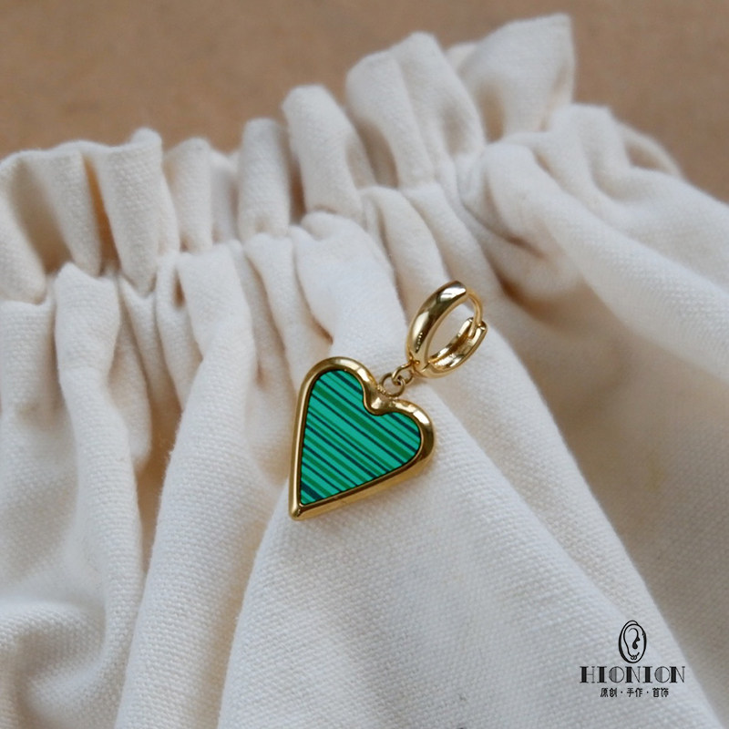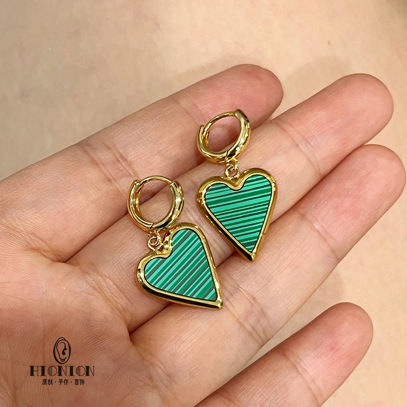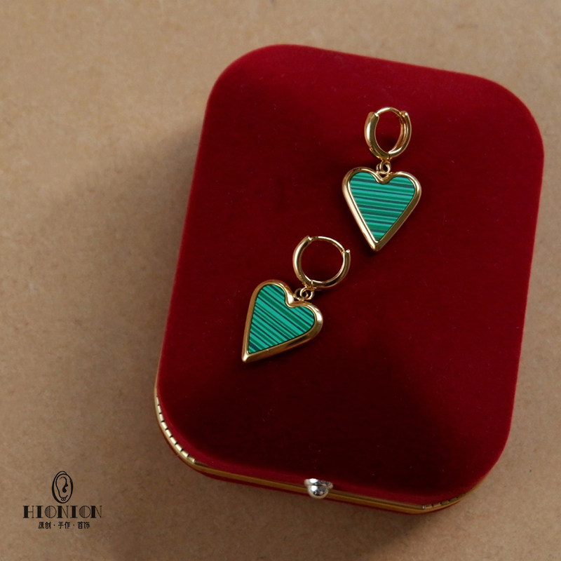 📚 《橄榄树下的情人》原创小众孔雀石耳扣男女耳夹复古法式chic耳环