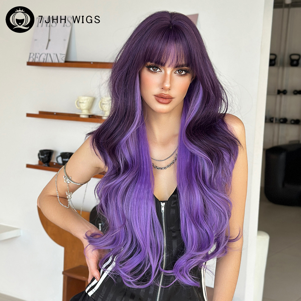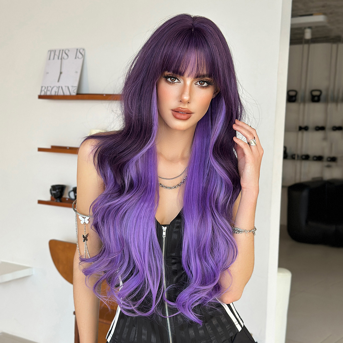 📚 欧美假发女长发演唱会紫色渐变wig长卷发二次元cos全头套万圣节