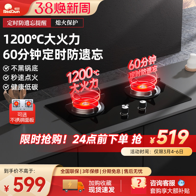 📚 红日燃气灶煤气灶双灶家用红外线猛火灶天然气炉灶液化气炉具台嵌