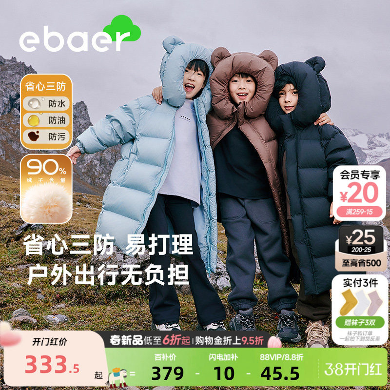 📚 EBAER儿童羽绒服长款加厚冬季新款男童女童90白鸭绒冬装保暖外套