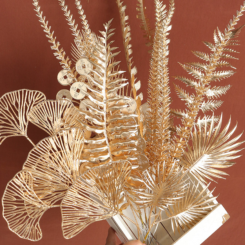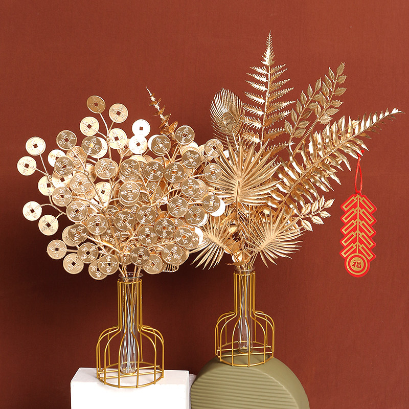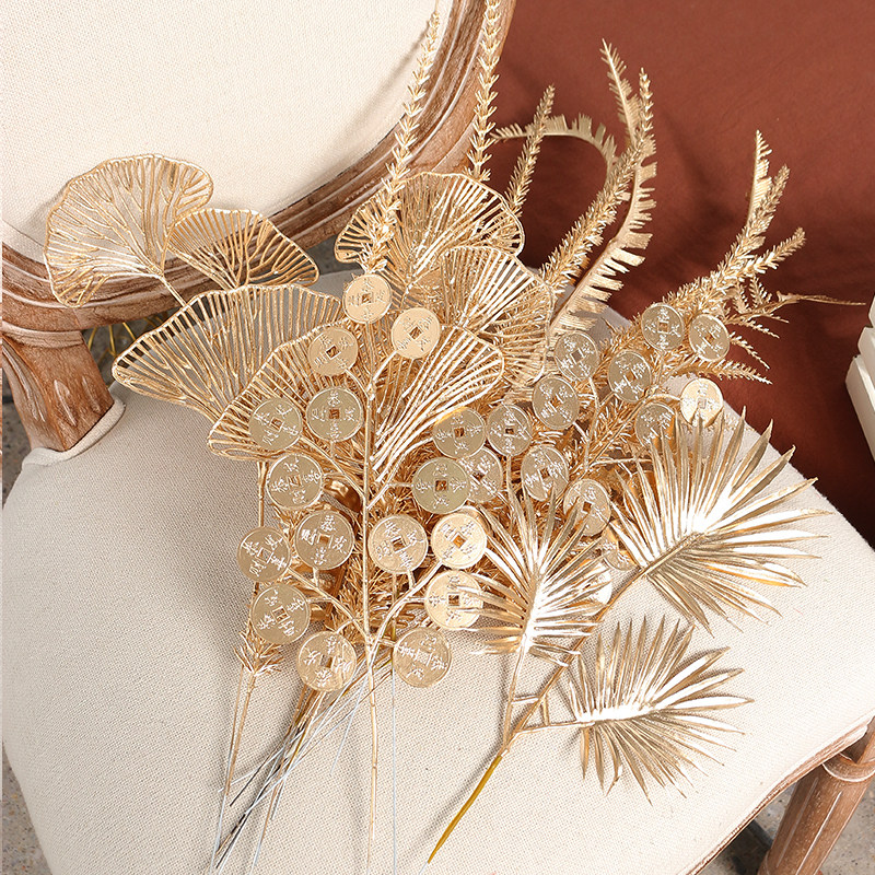 📚 金色系仿真花金色尤加利金叶子圣诞花年宵花家居装饰摆件福桶插花