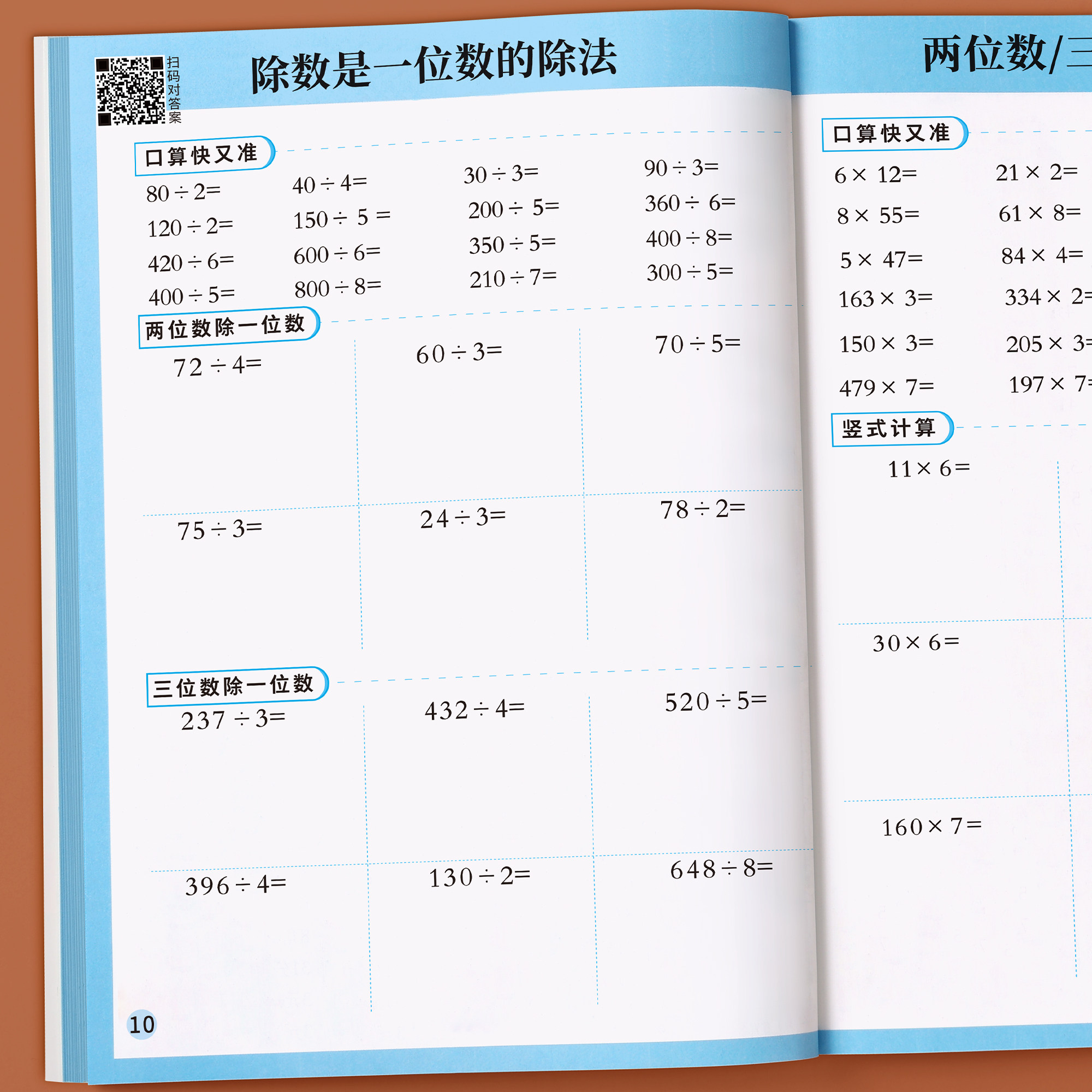 📚 三年级口算题天天练数学计算题强化训练上册下册人教版口算题卡每日一练乘除法口诀练习题每天一练脱式竖式练习计算思维同步练习册
