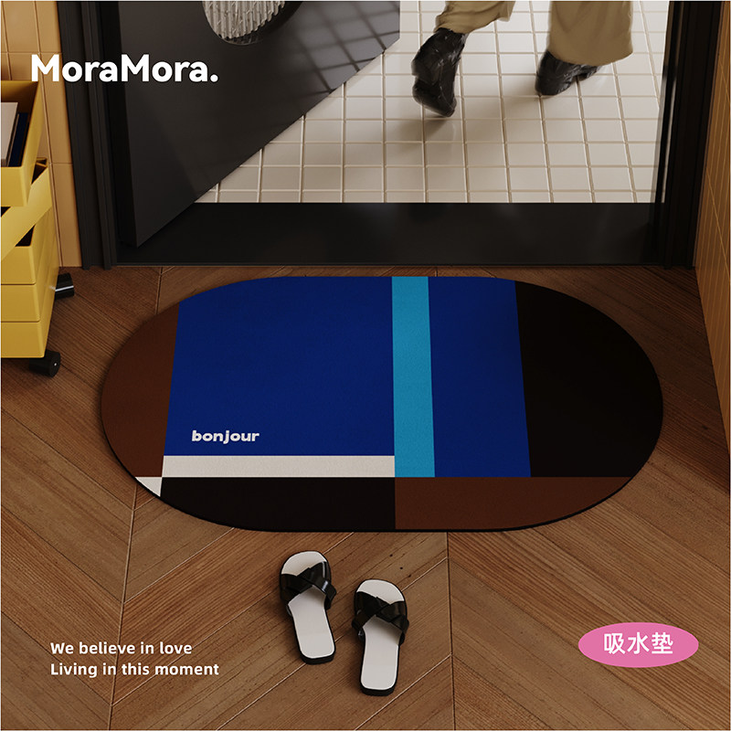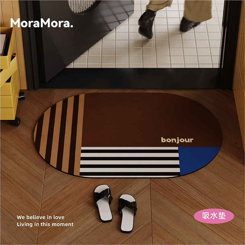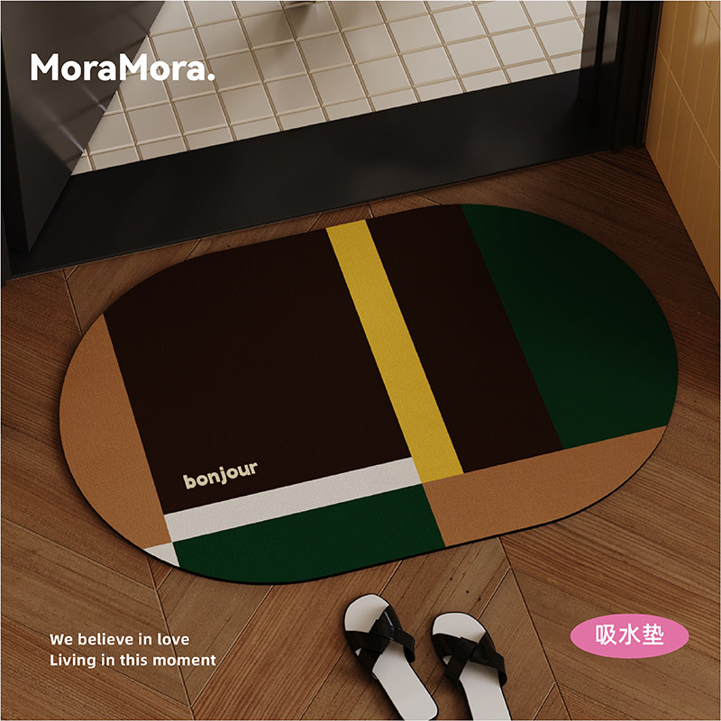 📚 高级感中古风拼色浴室地垫厕所卫生间门口吸水防滑脚垫纳帕皮地毯