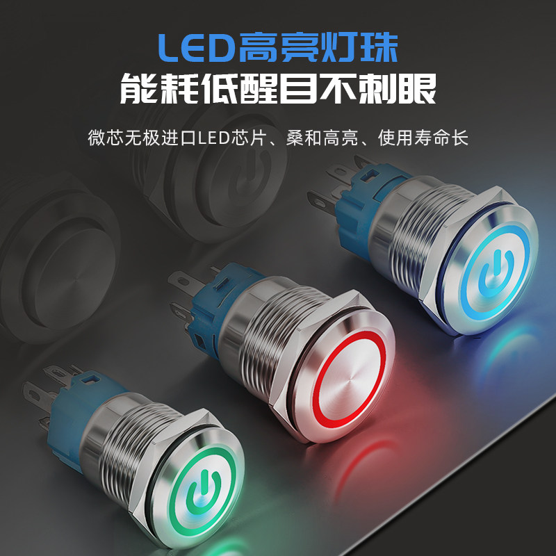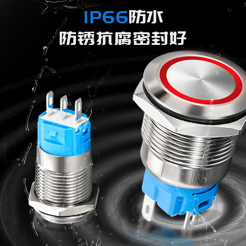 📚 19mm金属按钮开关带LED灯按钮自锁/复位按钮防水防尘IP65黄铜