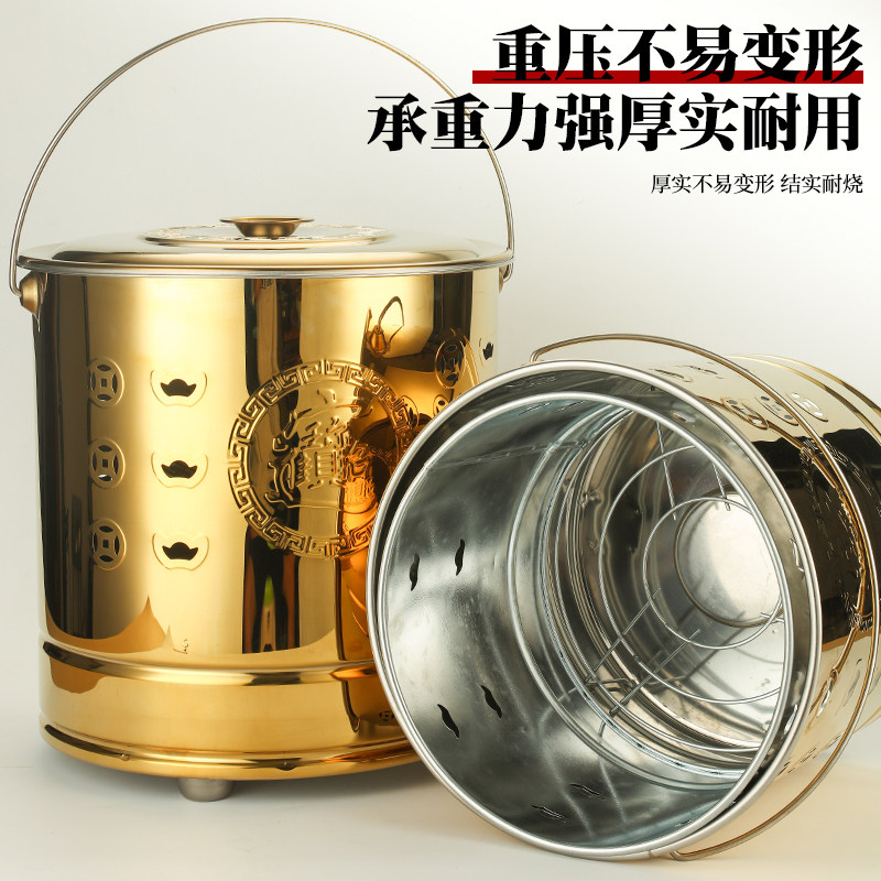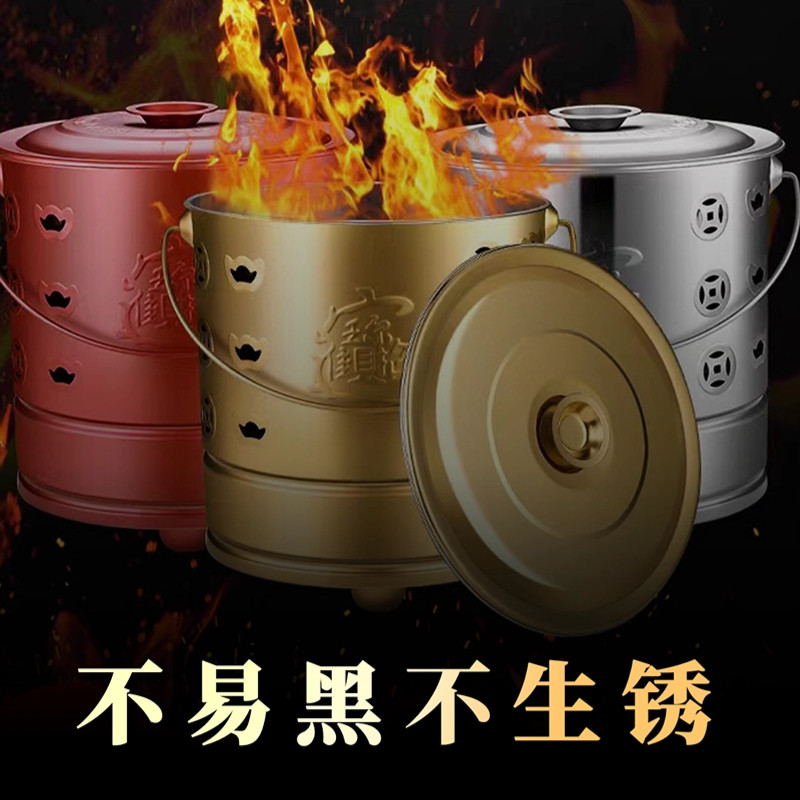 📚 烧纸桶不锈钢烧纸钱化宝炉烧金桶家用室内拜神烧经炉焚烧聚宝筒