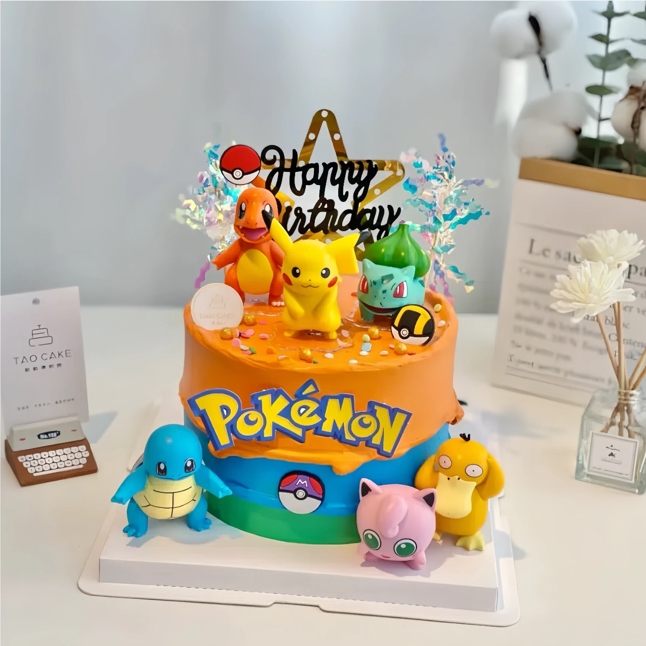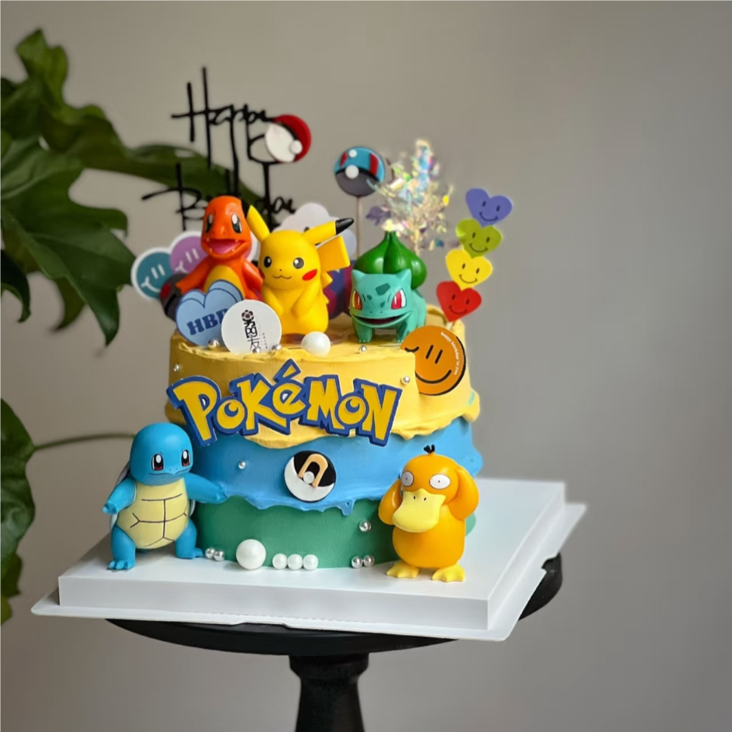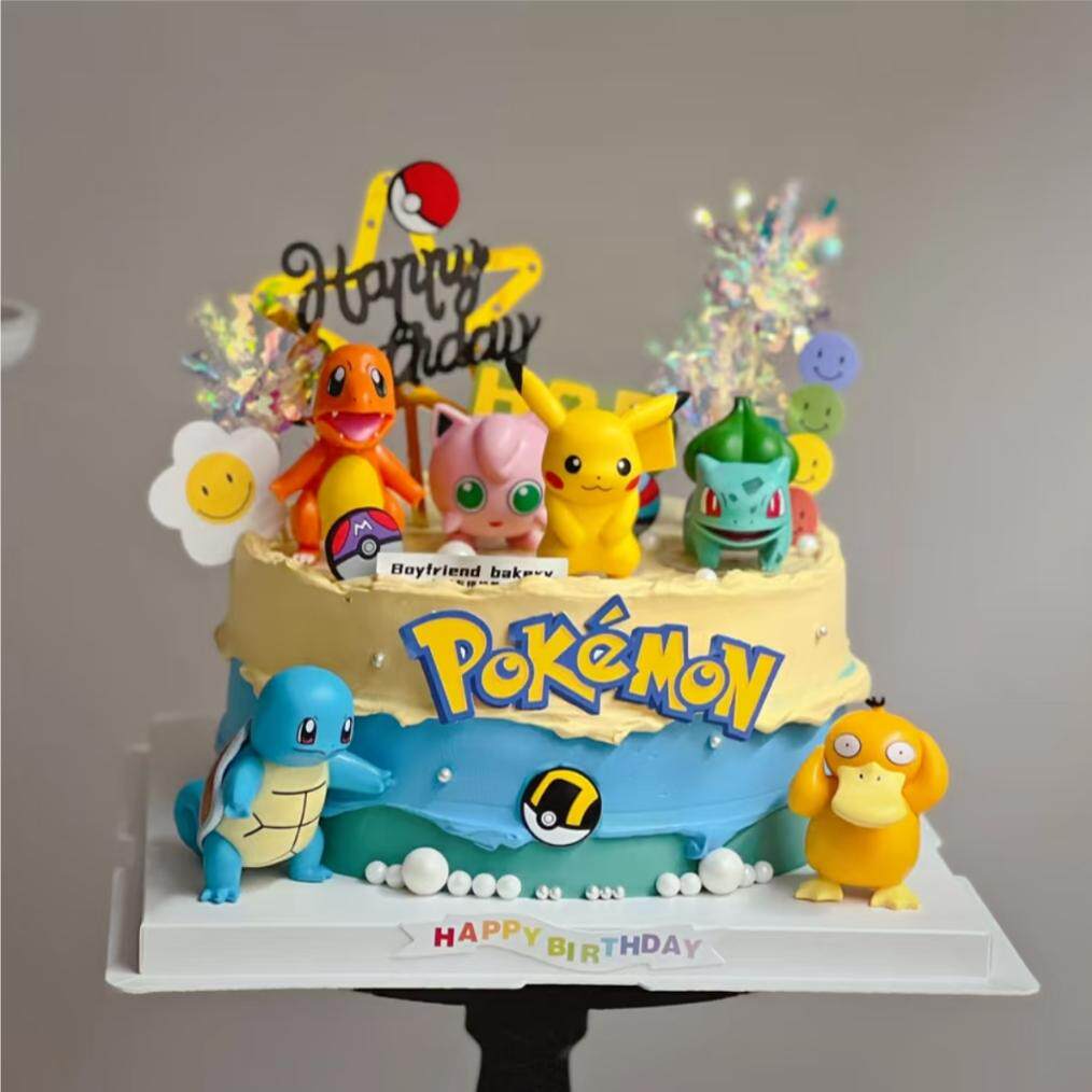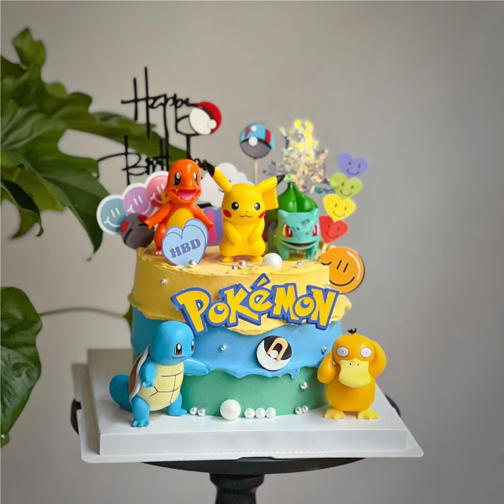 📚 神奇宝贝皮卡丘蛋糕装饰摆件网红精灵球可达鸭男孩生日甜品台插件