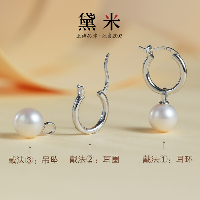 📚 黛米珠宝 和煦 8-9mm正圆无核淡水珍珠耳环S925银一款多戴耳饰女