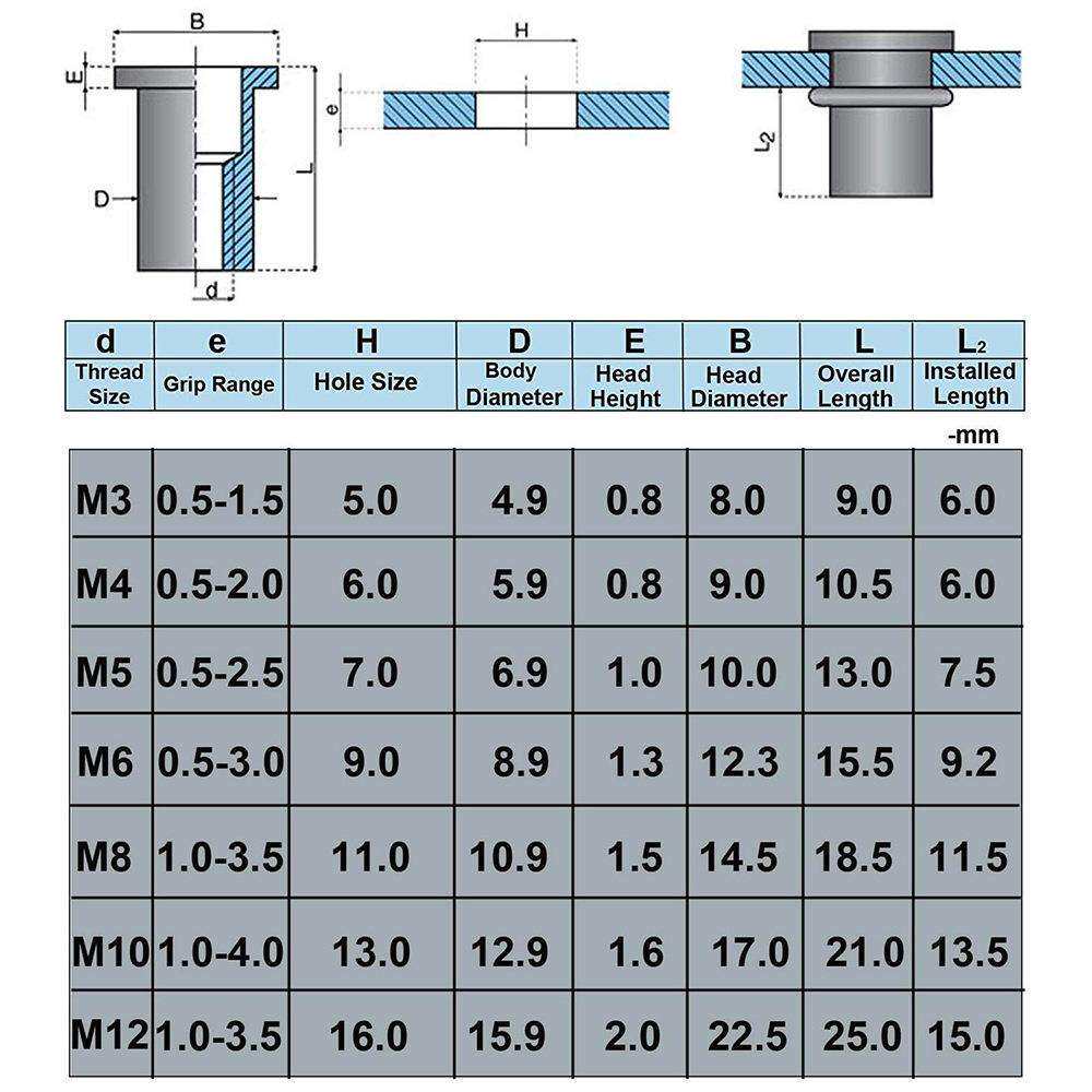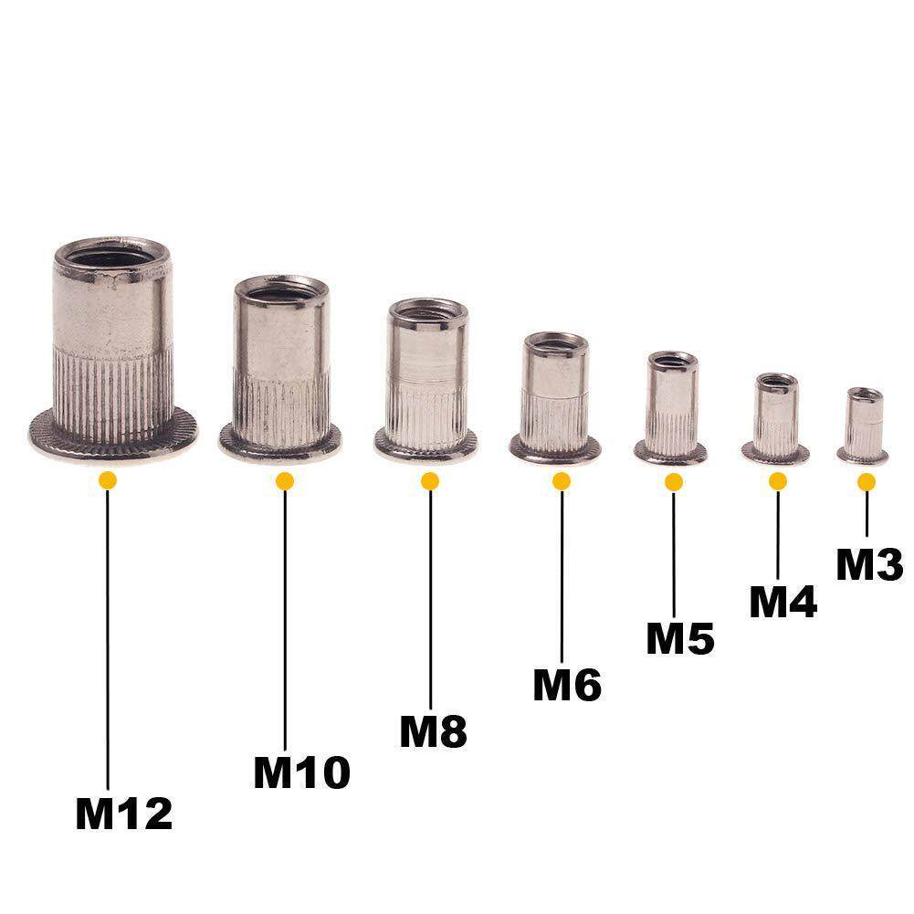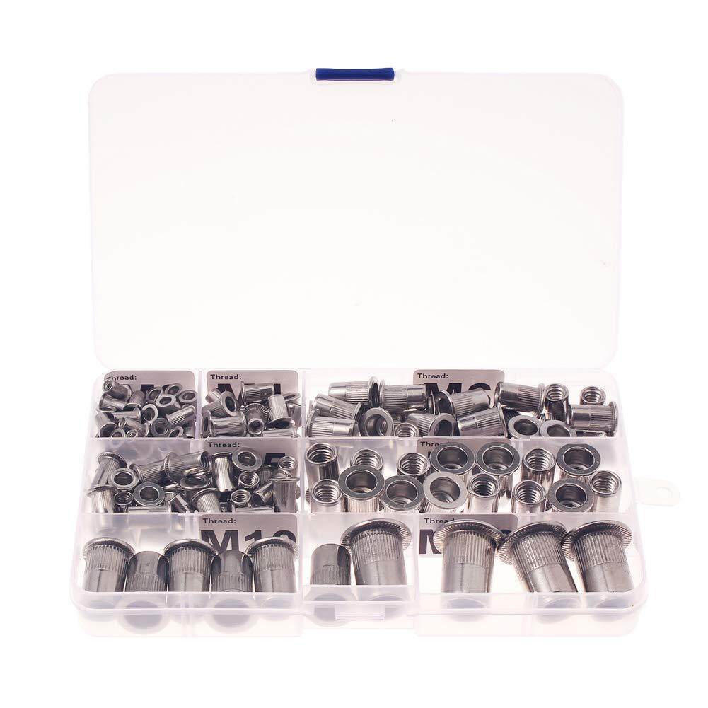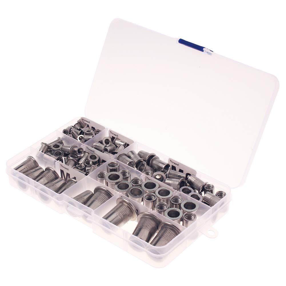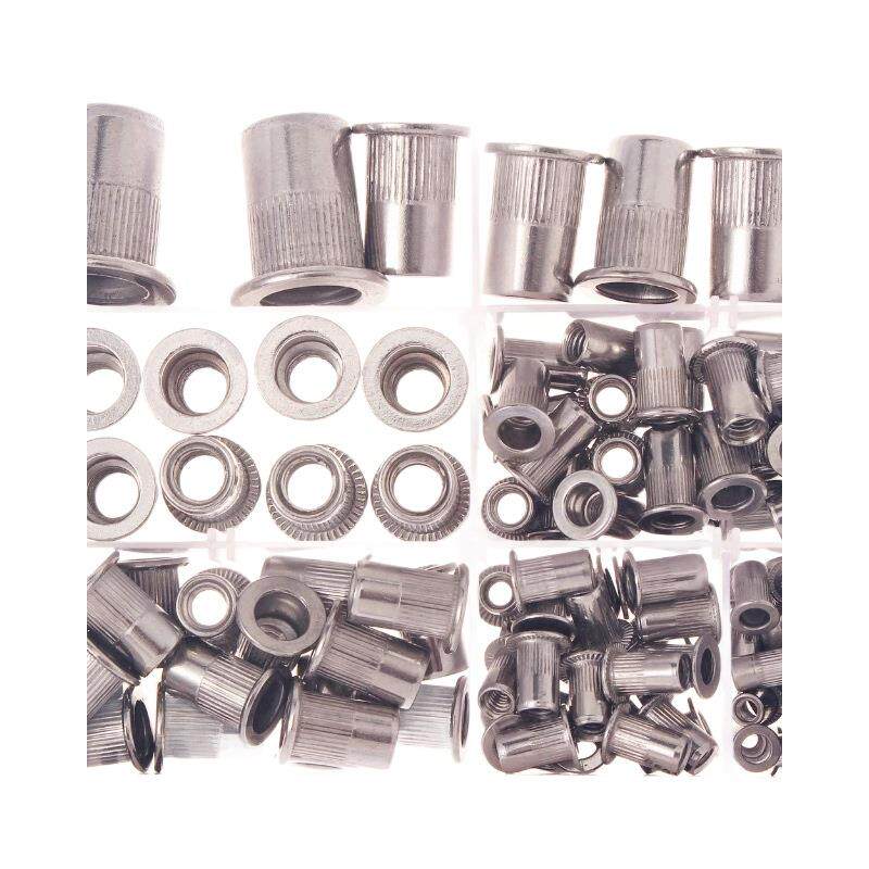 📚 跨境 155PCS 盒装 7种尺寸 304不锈钢铆钉螺纹平头拉铆螺母