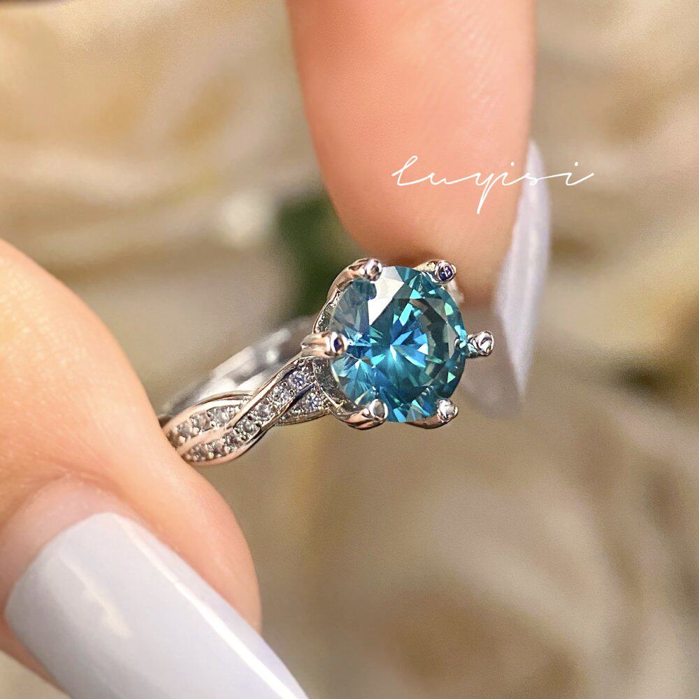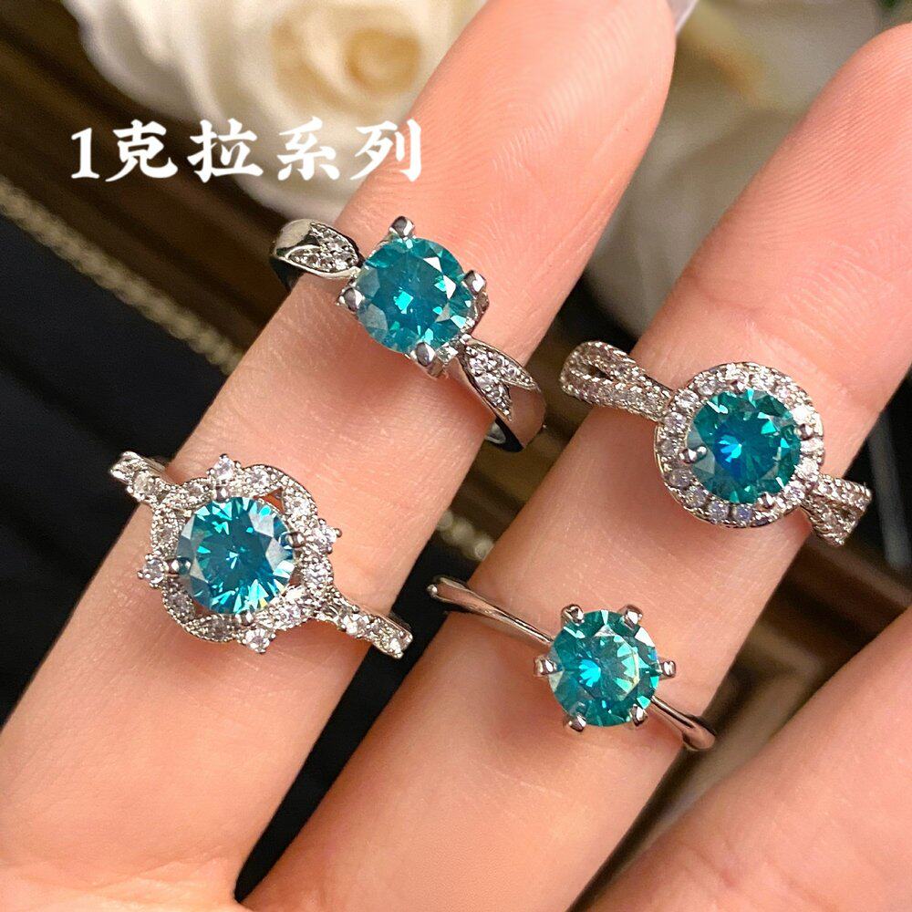 📚 2025新款超闪仿马尔代夫蓝绿莫桑钻戒指轻奢星光皇后半壁江山戒指