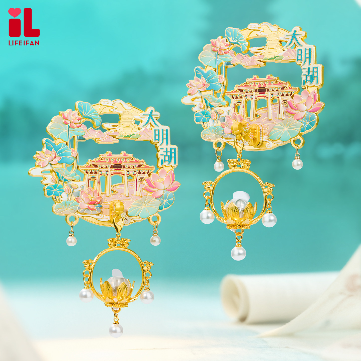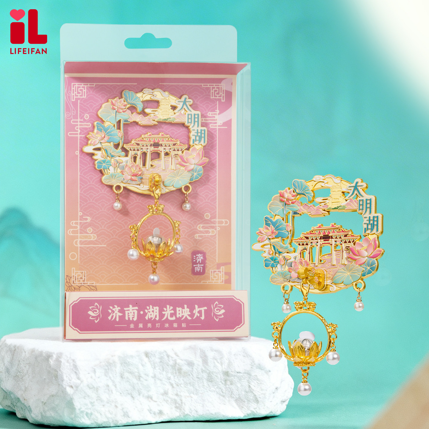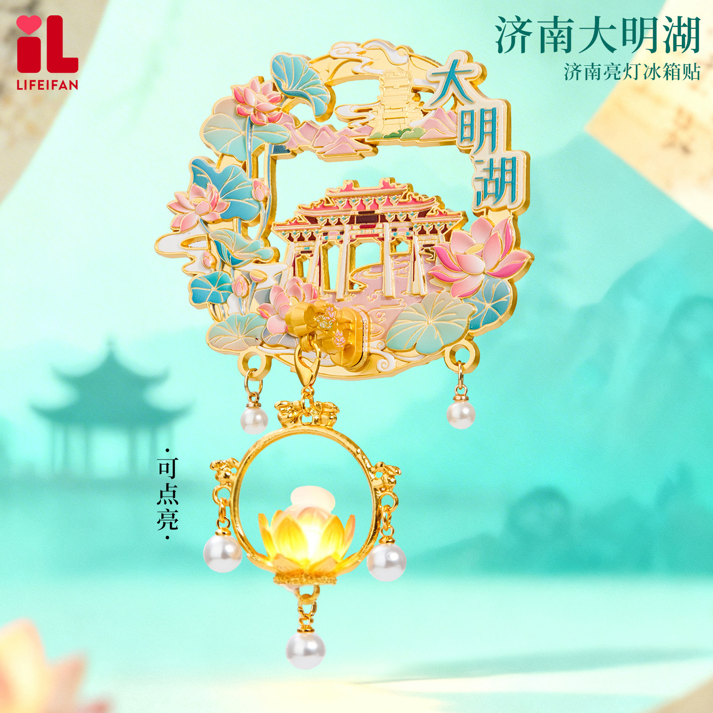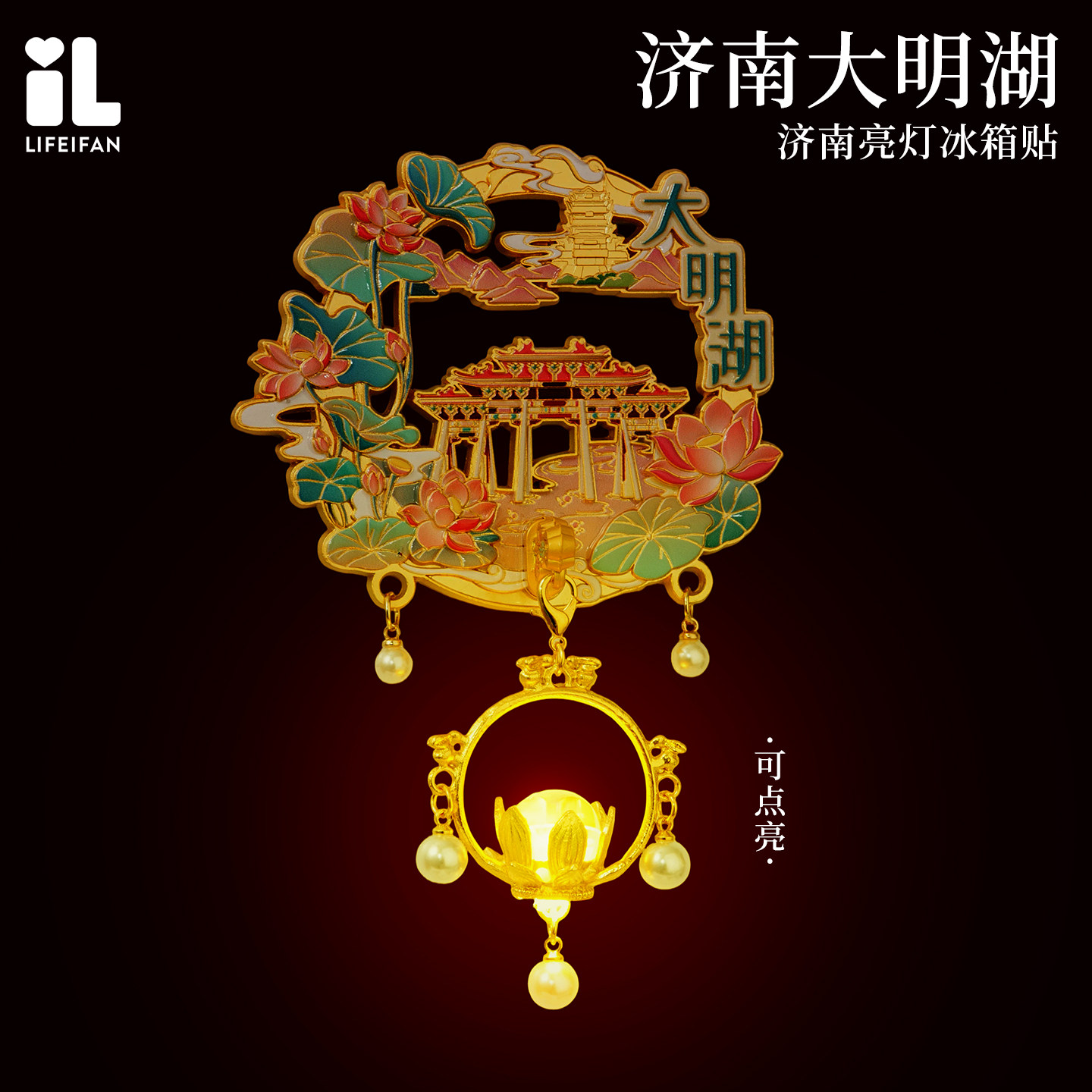 📚 济南湖光映灯冰箱贴大明湖荷花可发光金属灯笼山东文创旅游纪念品