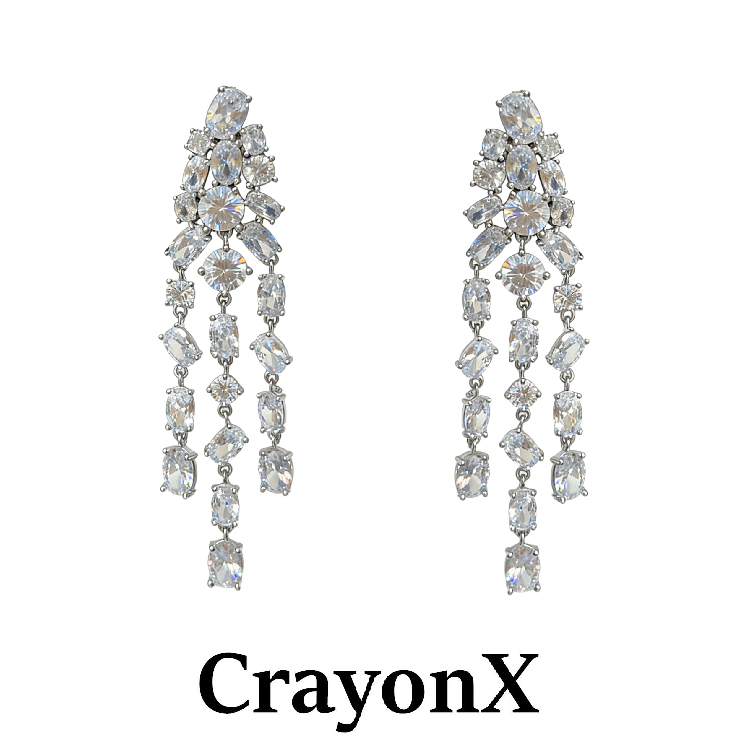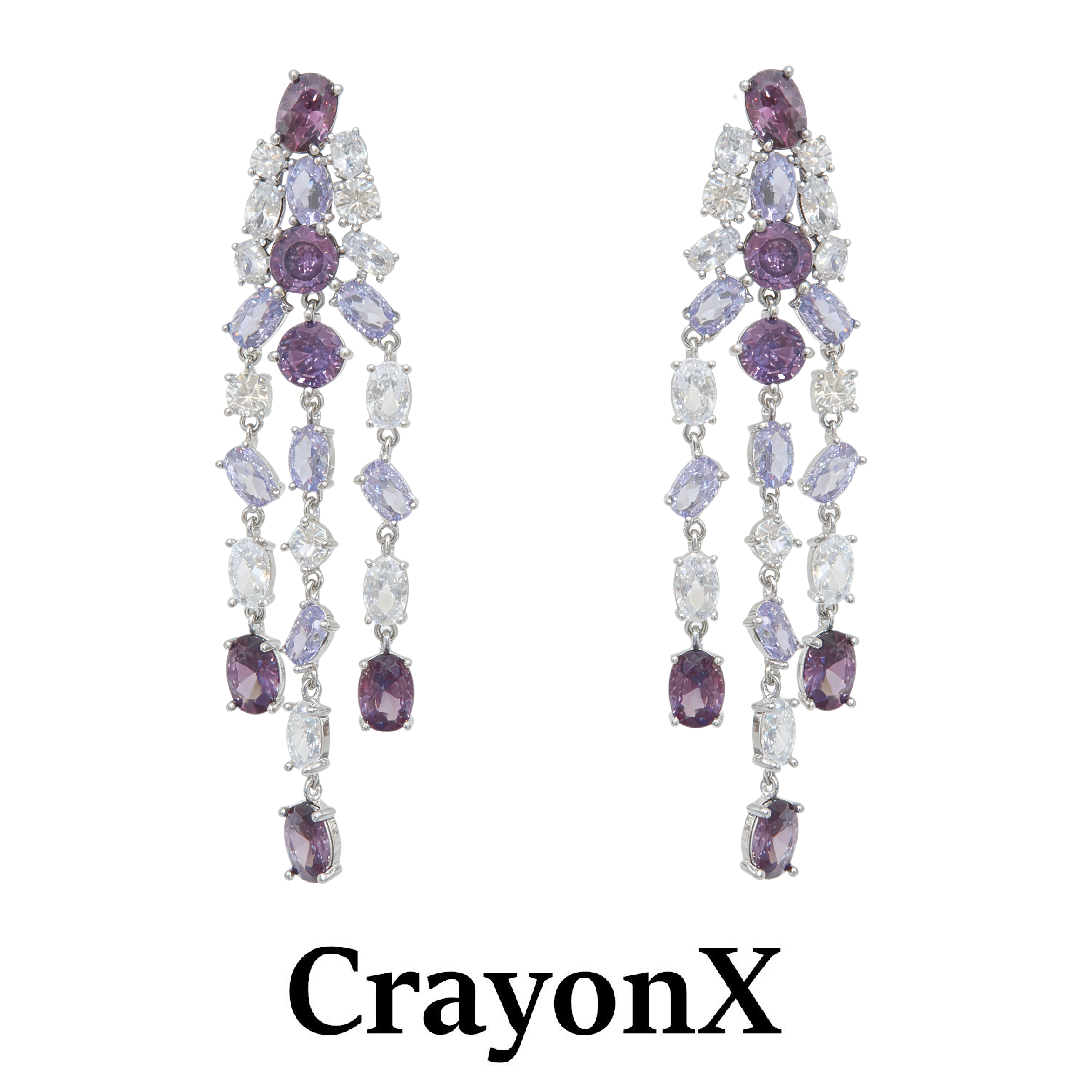 📚 CrayonX法式浪漫风彩色宝石流苏耳环女小众设计感长款耳饰