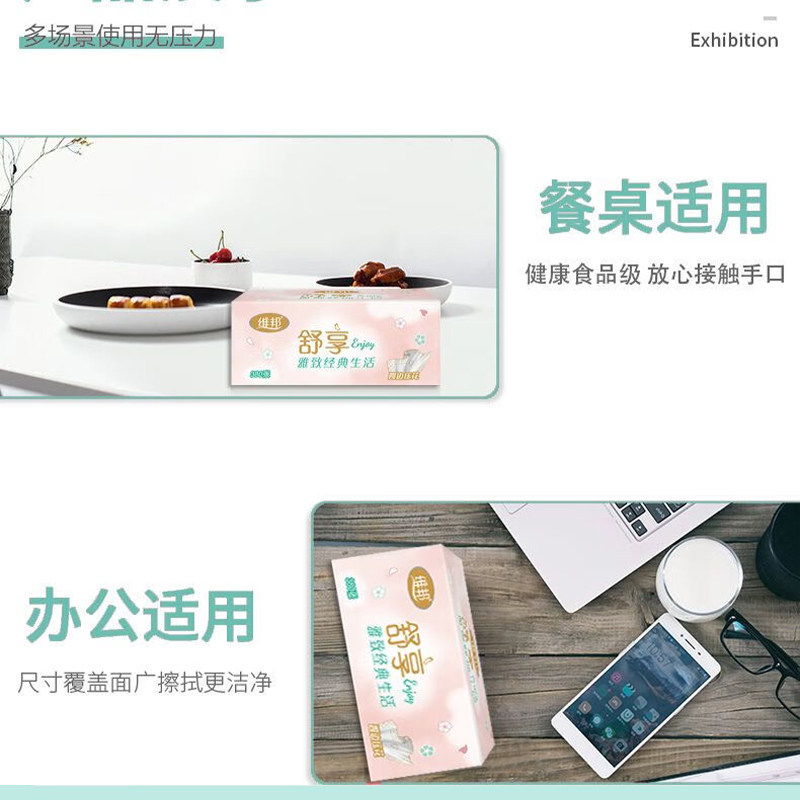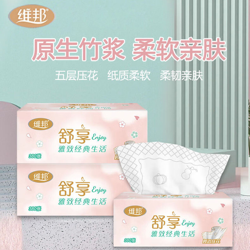 📚 维邦抽纸舒享5层加厚380张24包可湿水印花餐面巾纸整箱家用实惠装