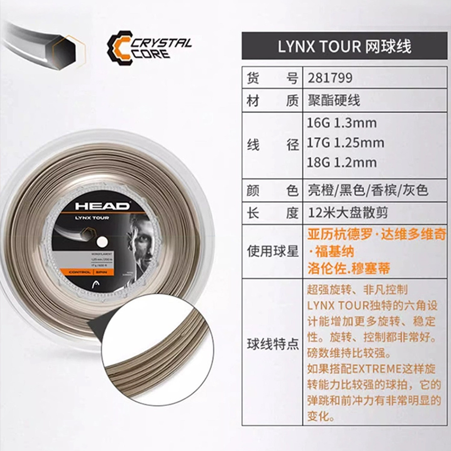 📚 Head海德网球线LYNX TOUR 六角聚酯硬线高端网球线专业球拍线耐打