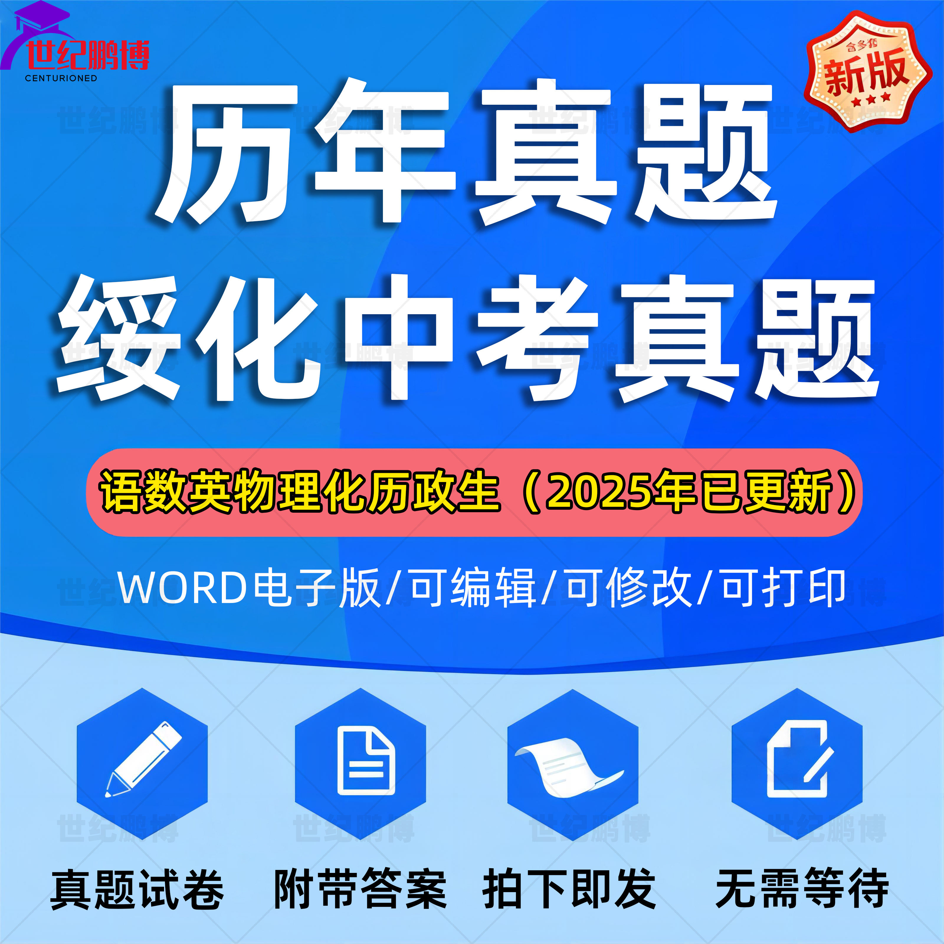 📚 2025年黑龙江省绥化市中考历年真题试卷语文数学英语物理化学历史地理生物政治习题初升高Word试题初三九年级上下册解析答案电子版