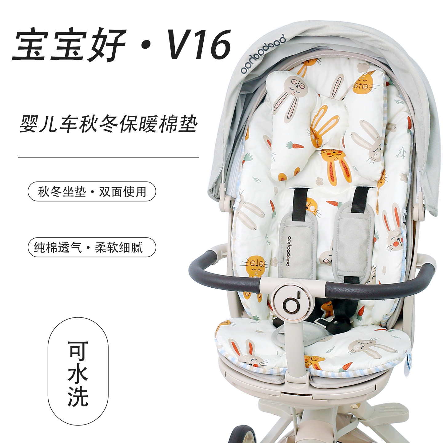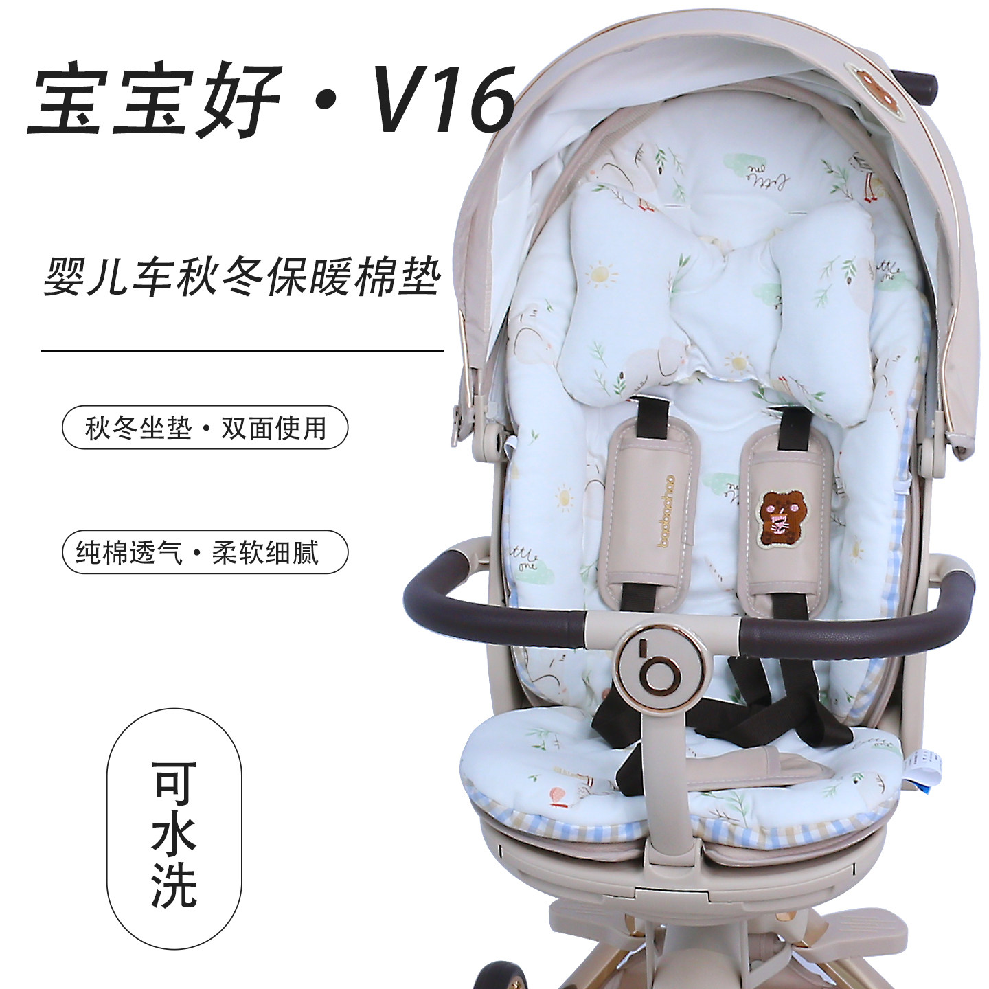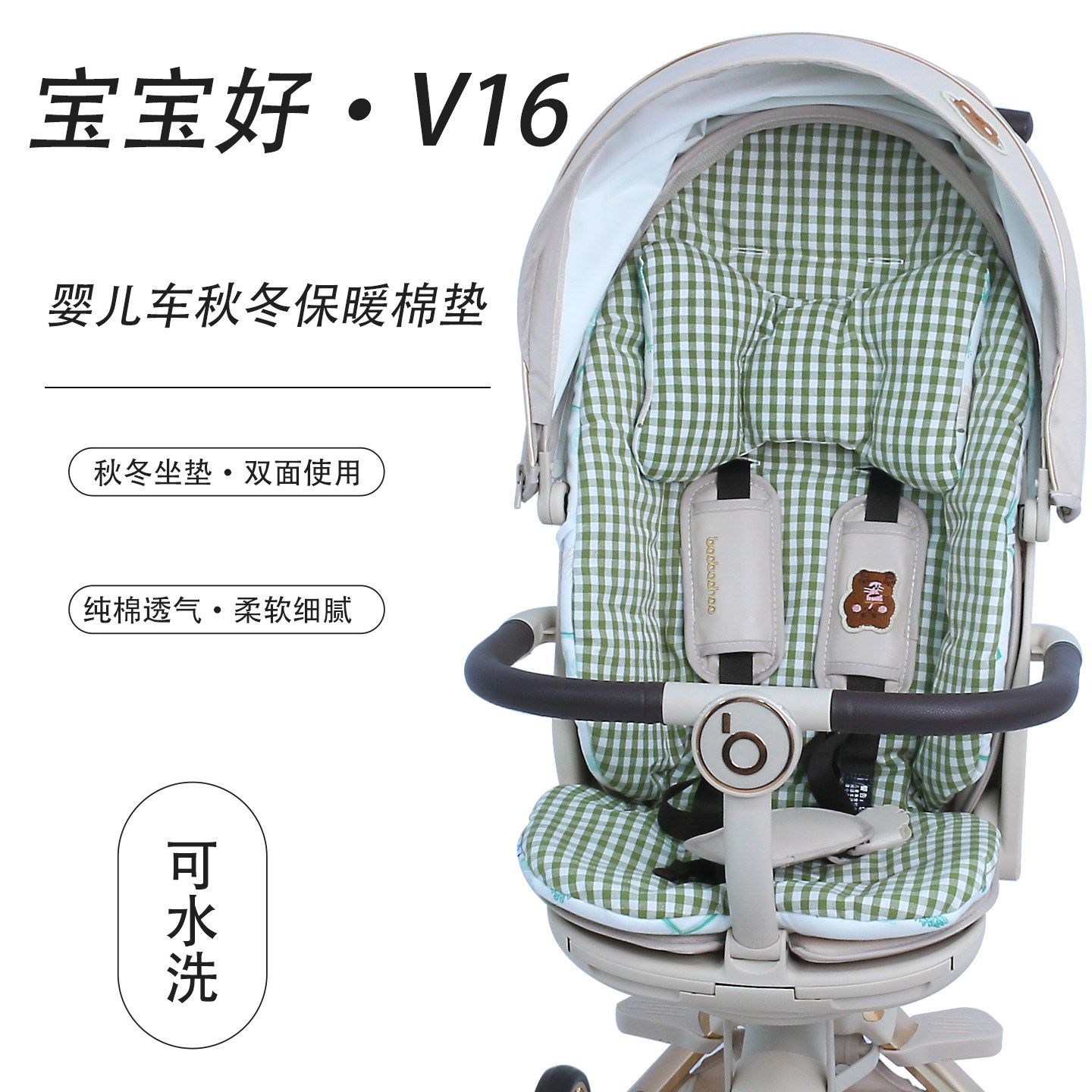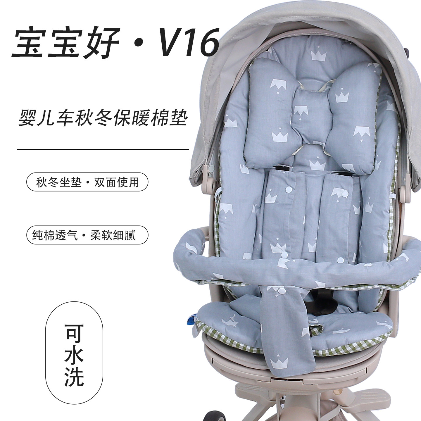 📚 宝宝好V16保暖棉坐垫婴儿车遛娃神器秋冬加厚苎麻透气垫四季通用