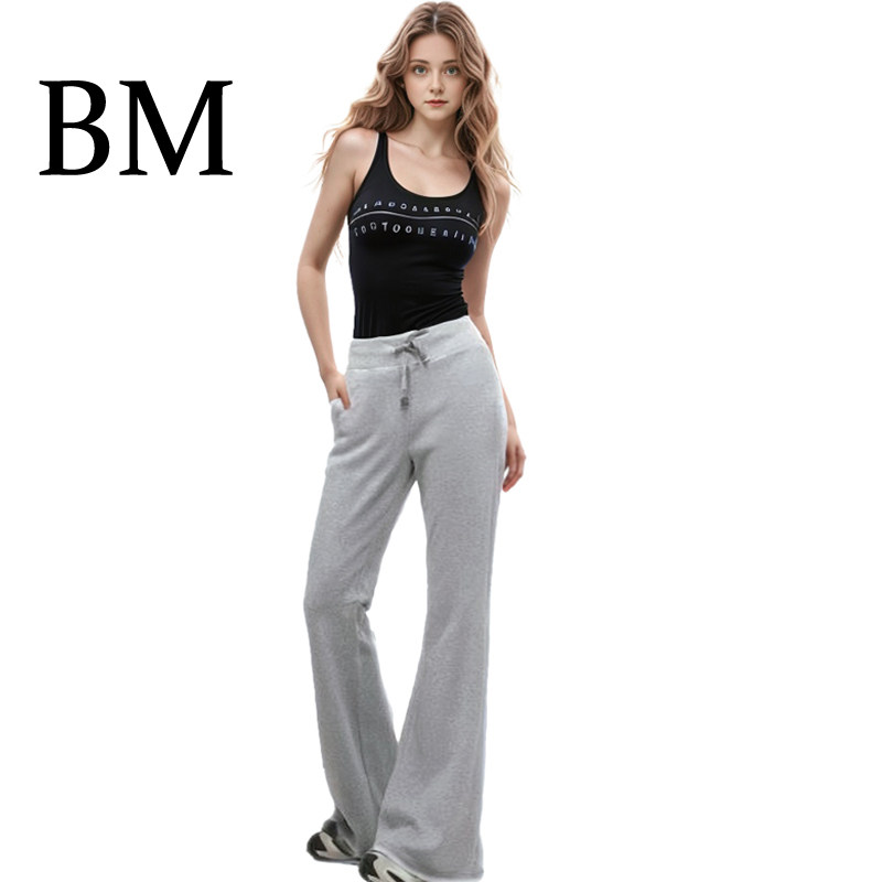 📚 BM美式抽绳系带休闲灰色运动裤赵露思同款卫裤显瘦卷边百搭微喇裤