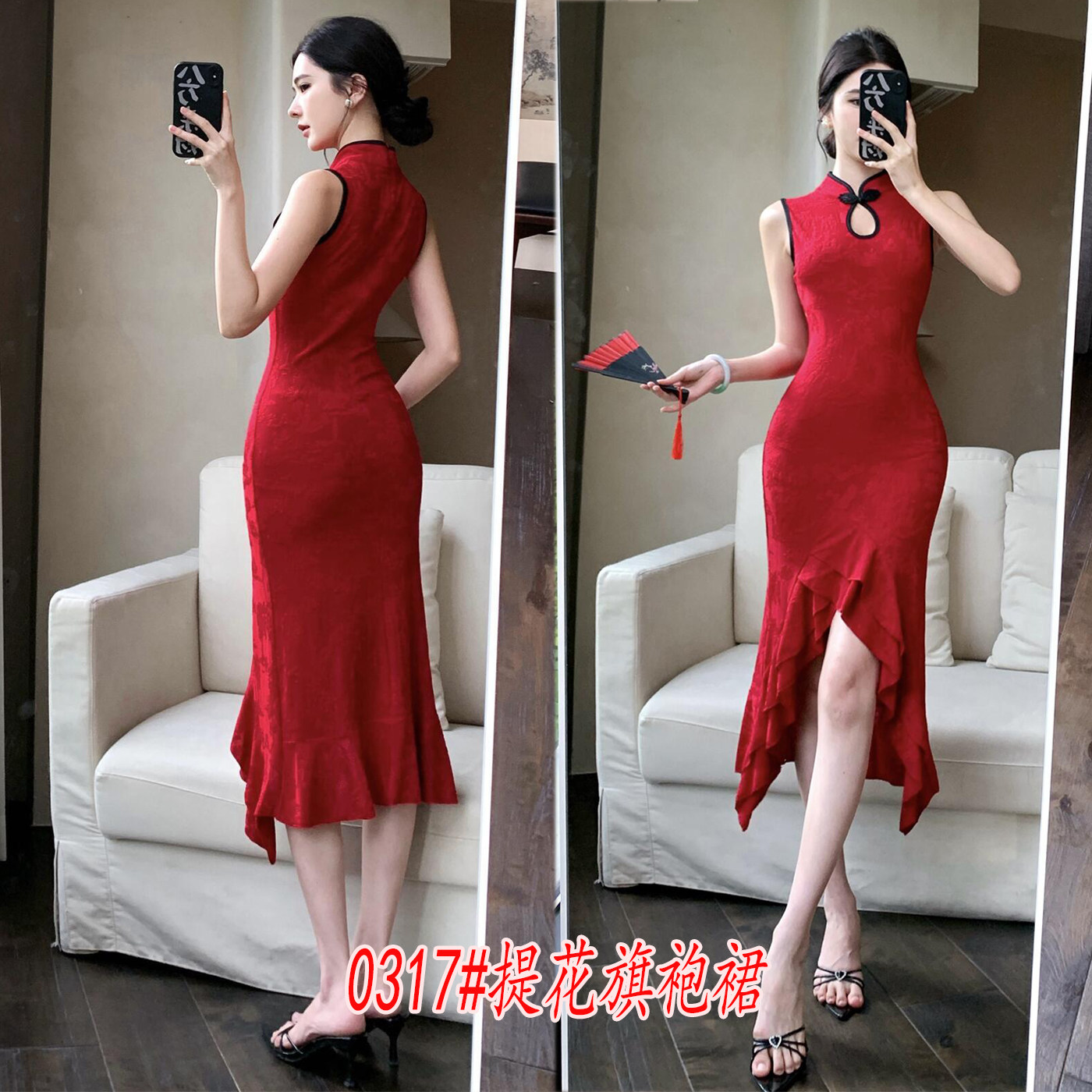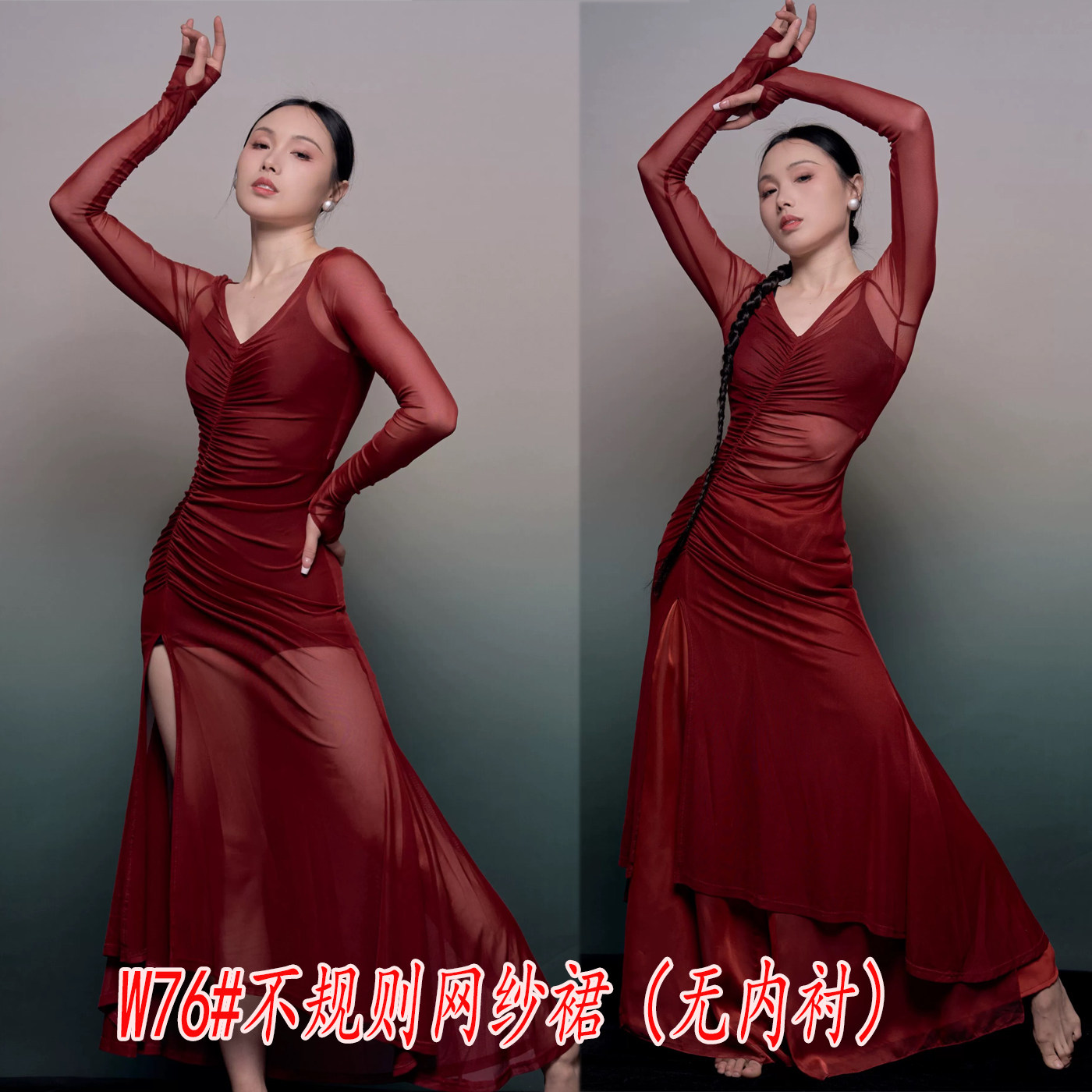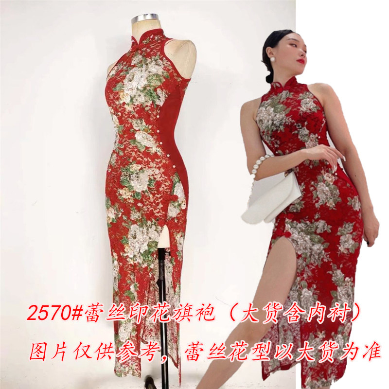 📚 闪光不规则红色舞蹈连衣裙古典蕾丝旗袍显瘦飘逸开叉练功服舞台装