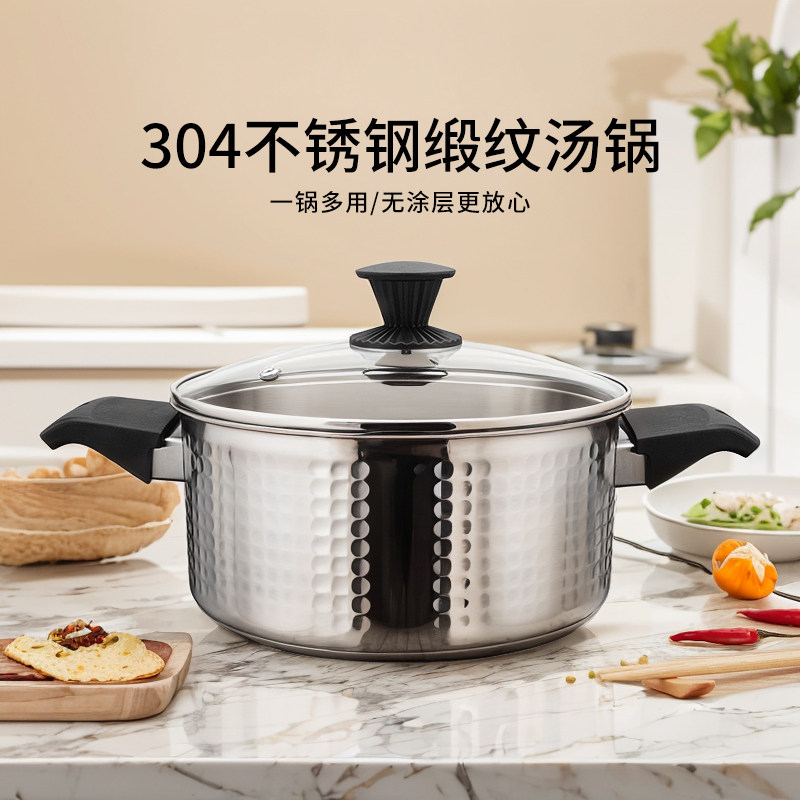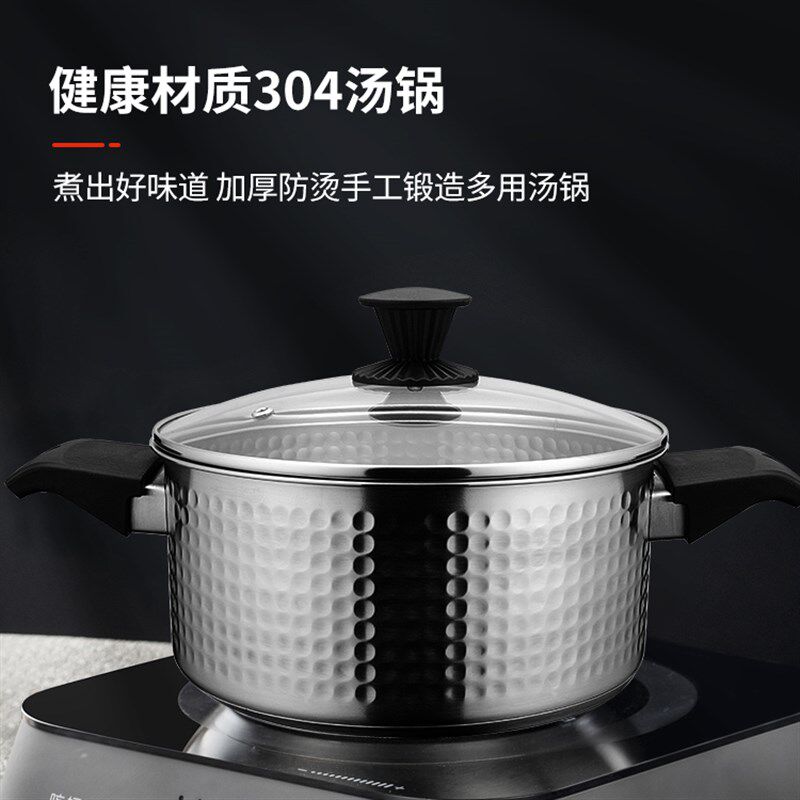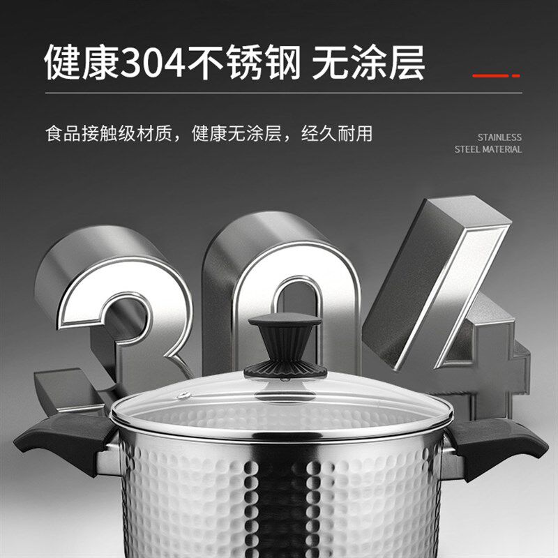 📚 中宝304食品级加厚不锈钢火锅双耳汤锅家用燃气电磁炉通用不粘锅
